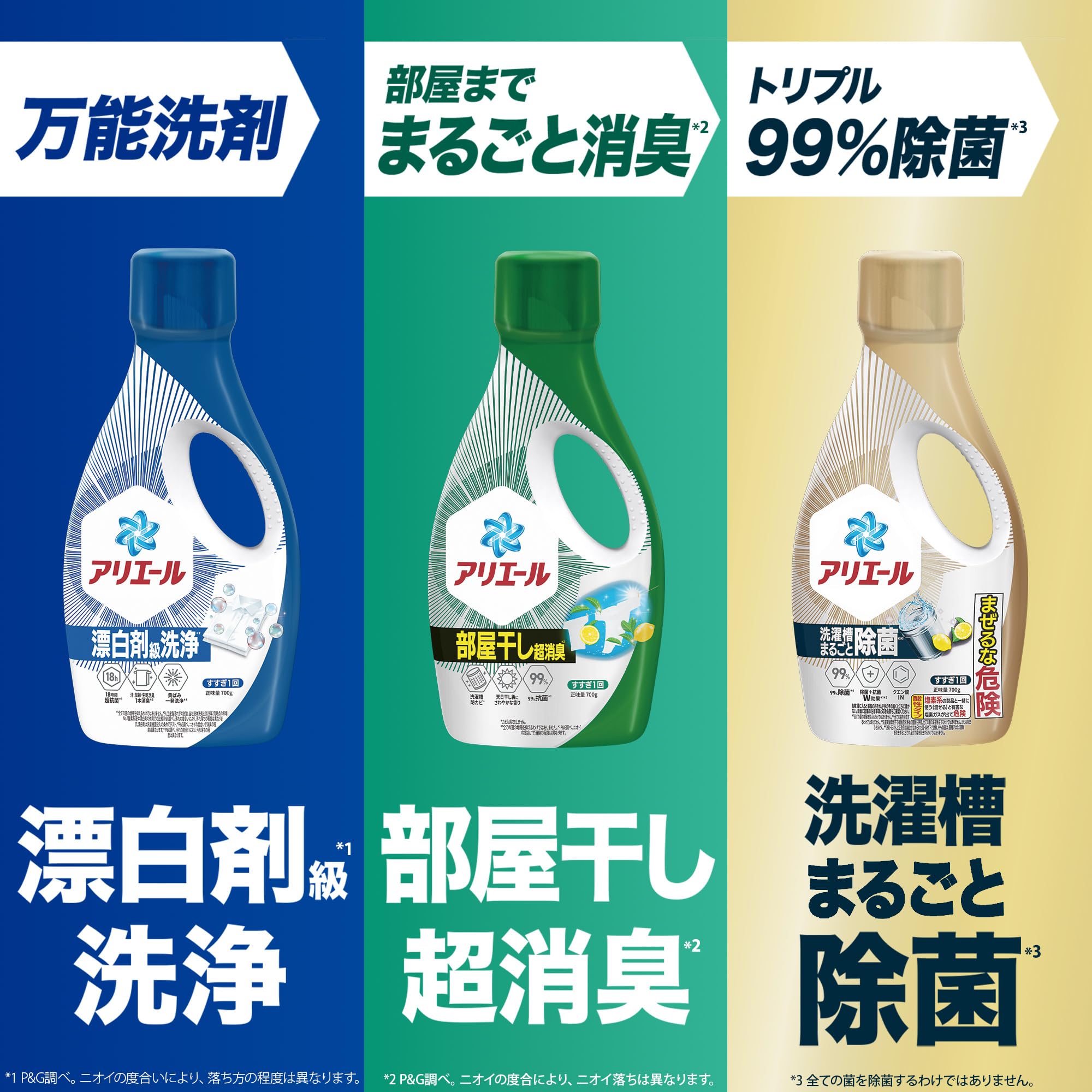 * 10%濃縮!同じ洗濯洗剤量で今までより+5枚洗える!*2023年アリエール超抗菌プレミアムシリーズ比。同じ洗濯水量設定の場合。