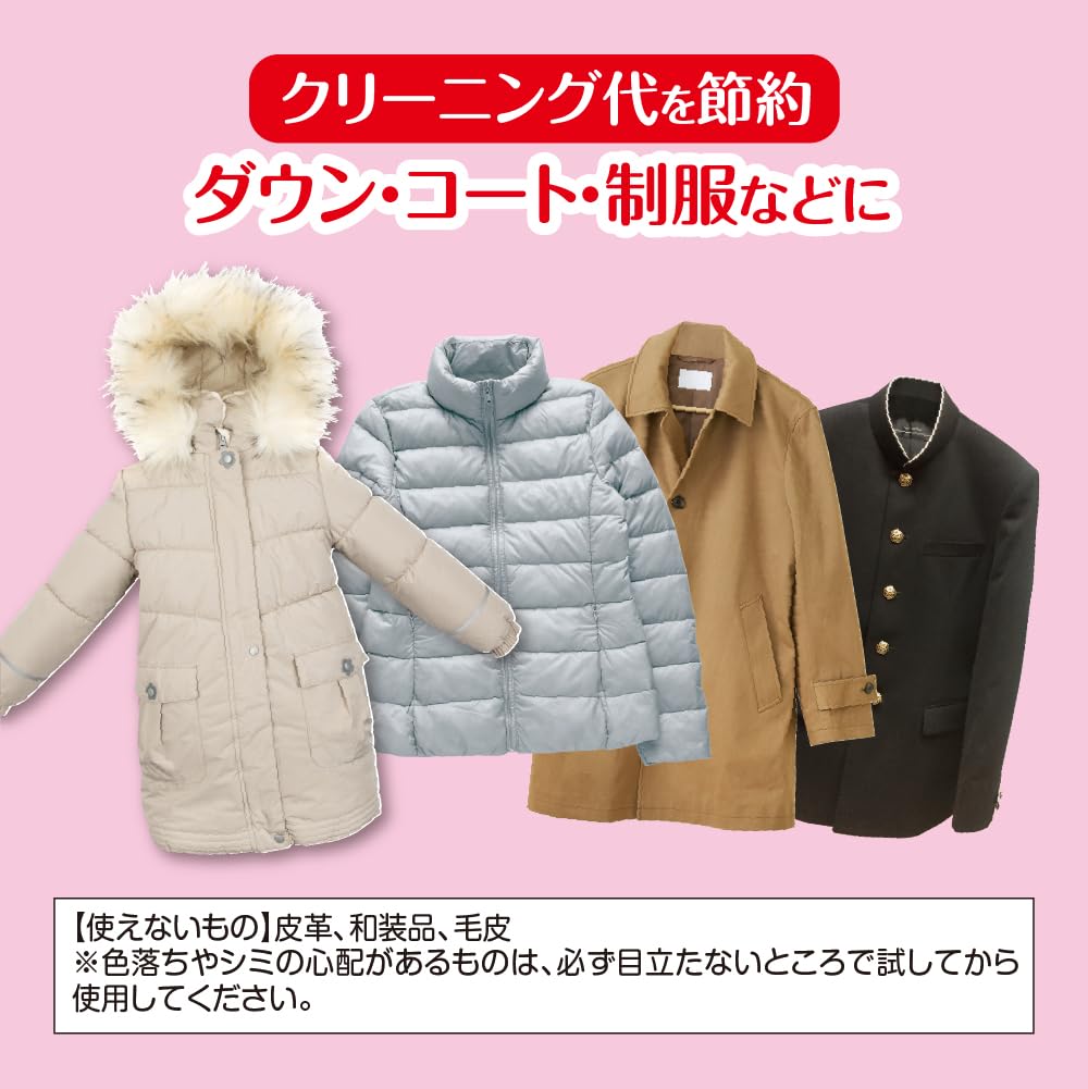 * 《使用方法》 ※必ず目立たないところで試してから使用してください。 (1) 衣類から10~20cm離して、汚れ部分とその周辺が湿る程度にスプレーしてください。 ※一ヶ所に集中してスプレーしないでください。シミやベタつきの原因になることがあります。 (2) 水で固く絞ったきれいな布でやさしく汚れを拭き取った後、陰干しで完全に乾かしてください。 ※汚れがひどい場合は、スプレーして1~2分置いてから拭くと効果的です。汚れが落ちにくい場合は、繰り返し洗浄してください。 ※輪ジミの原因になりますので、スプレーした後、長時間放置はしないでください。