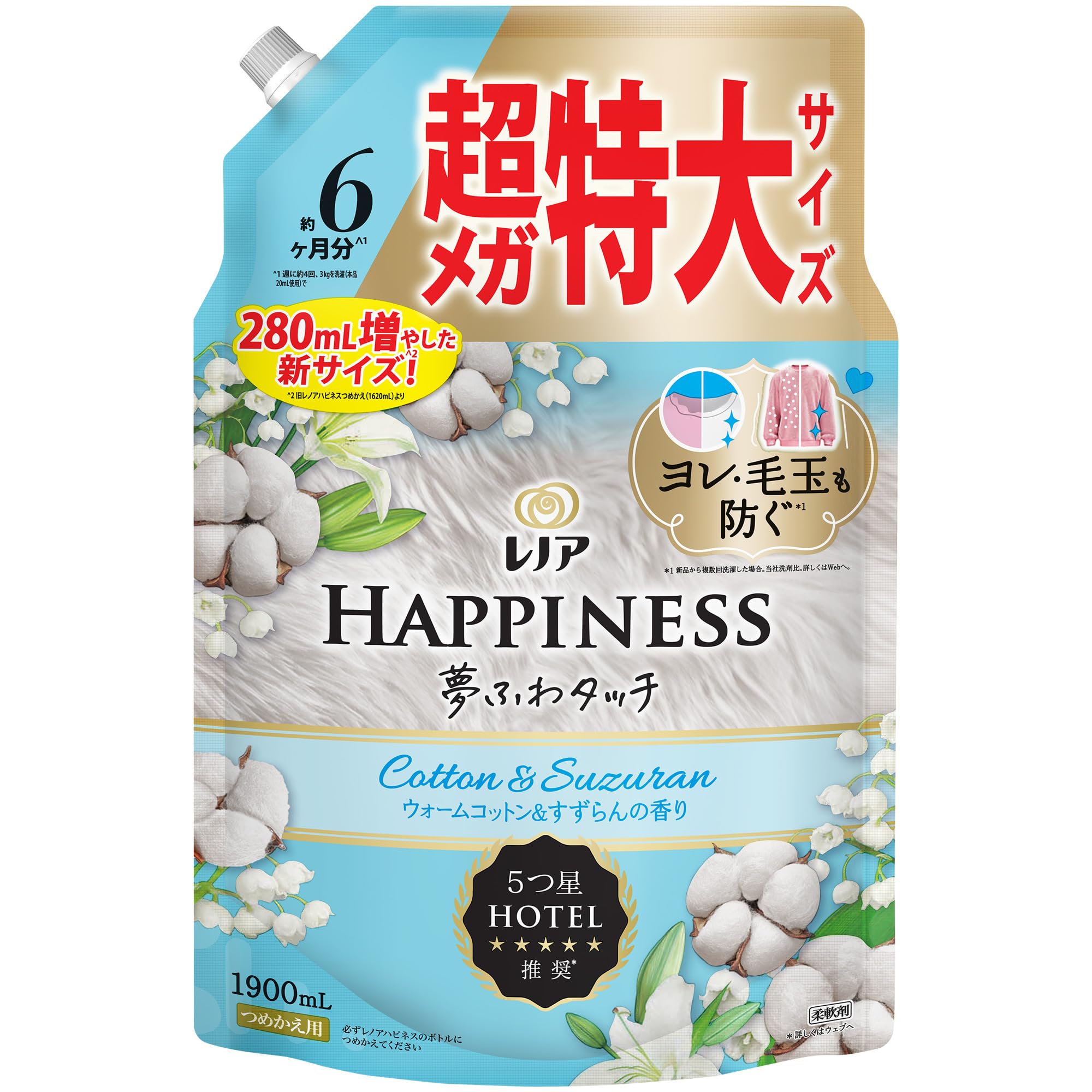 レノア ハピネス 夢ふわタッチ 柔軟剤 ウォームコットン&すずらんの香り 詰め替え 1900mL