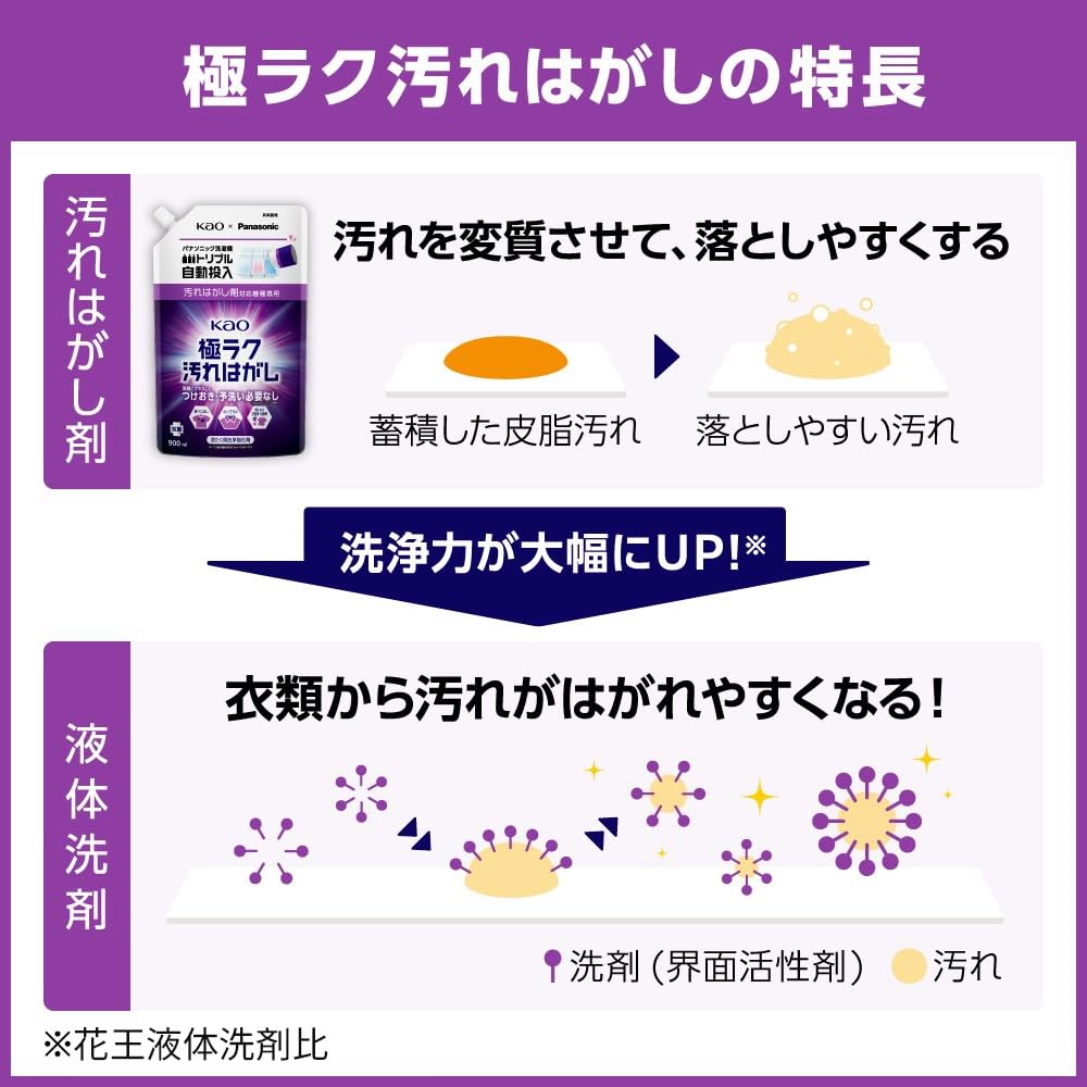 * 洗剤にプラスしてつけおき・予洗い必要なし(汚れはがしコースの場合)。手間がかかっていた「エリソデ汚れ」「食べこぼし」「気になる皮脂臭・加齢臭」に。※汚れはがし剤対応機種専用