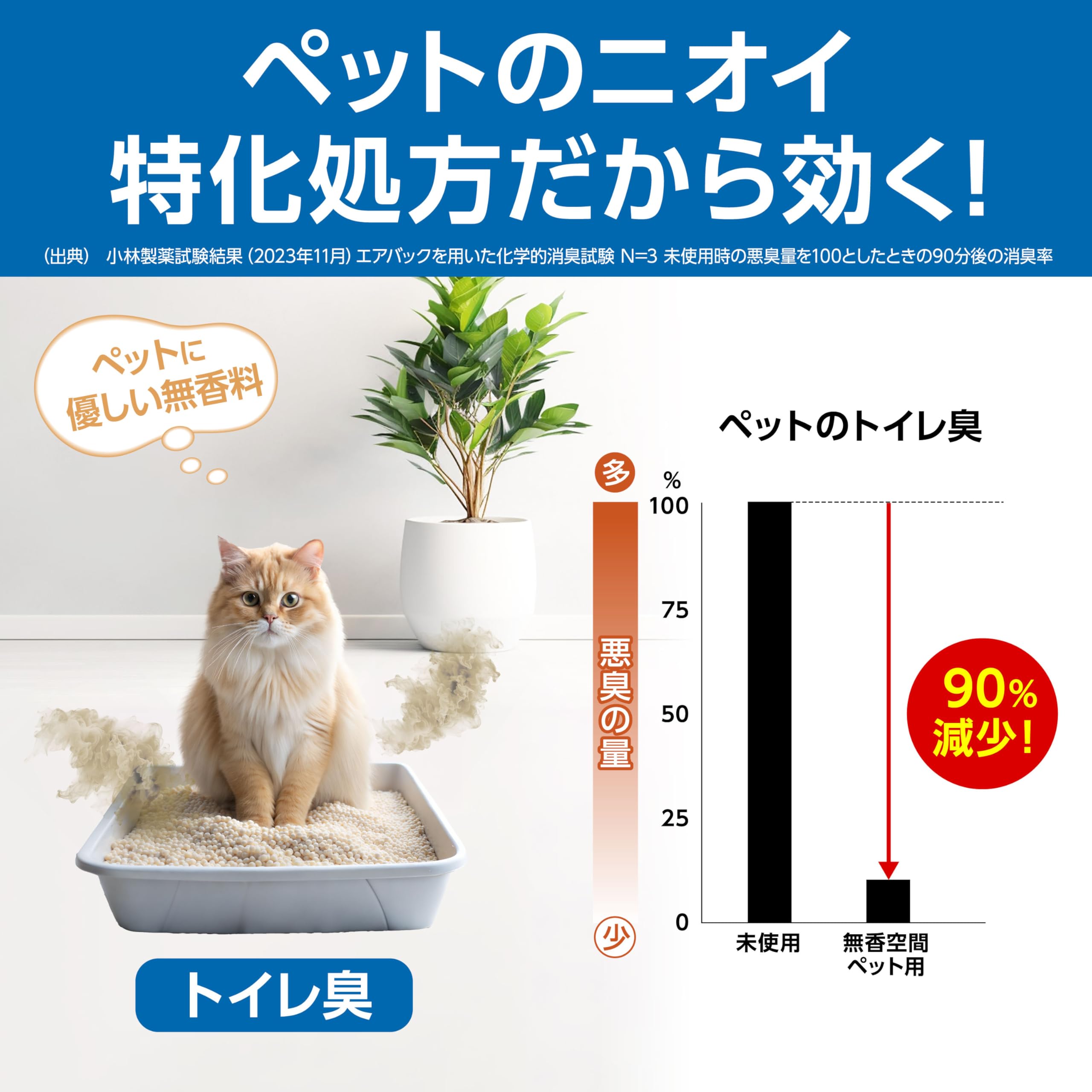 * ●「ペット用無香空間TM」は、ペットの体臭やトイレ臭に特化した専用処方で、気になるニオイを効果的に消臭。●ペットの安全に配慮した容器設計。●香りを一切使用していない無香タイプの消臭剤です。●各種の消臭作用を持つアミノ酸系消臭成分を配合。●透明ビーズが様々な気になるニオイを効果的に消臭します。●ニオイの発生源のできるだけ近くでよどんだニオイを感じるところにお使いください。