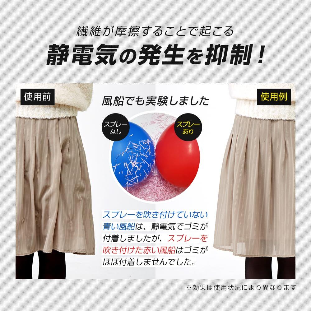 * 【1日1回、お出かけ前にスプレー】繊維が摩擦することで起こる静電気の発生を抑制!静電気が帯電しにくくなり、 埃の付着や花粉対策にも。