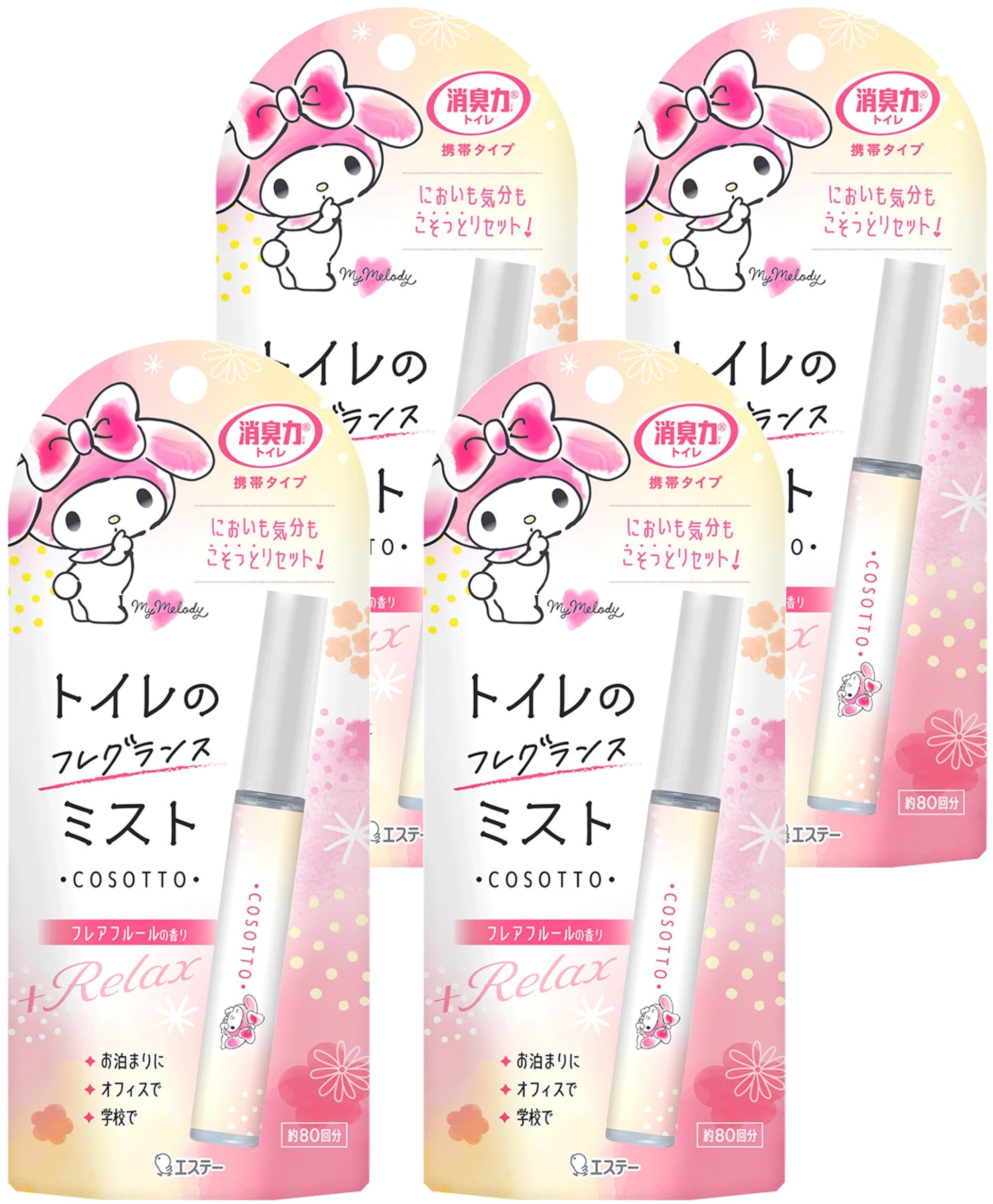 消臭力 トイレ 携帯タイプ [まとめ買い] トイレ用 消臭ミスト スプレー フレアフルール 9mL×4個 消臭剤 消臭 芳香剤 消臭スプレー フレグランスミスト コソット 携帯ミスト サンリオ マイメロ