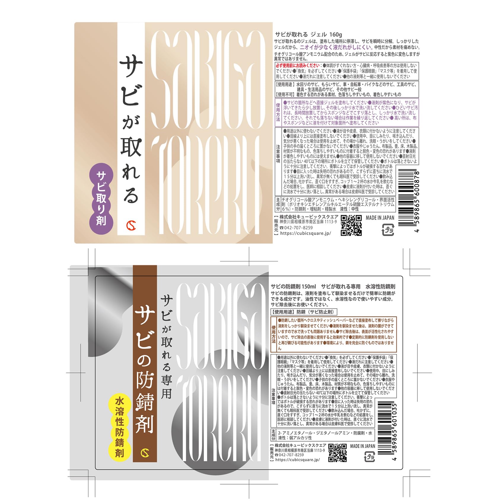 サビ落とし サビが取れる サビ取り ジェル 160g サビの防錆剤 150ml サビ取り剤 強力 高粘度 中性 低臭 速攻浸透分解 プロ仕様 チオグリコール酸アンモニウム配合 防サビ 【キュービックスクエア】