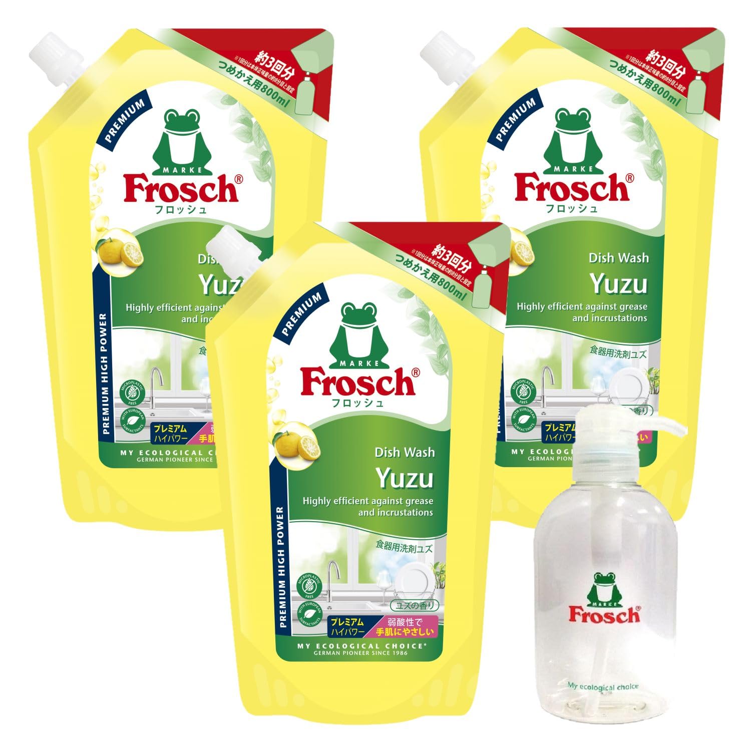 フロッシュ食器用洗剤ユズ 800ml プレミアム×3本 ポンプボトル付
