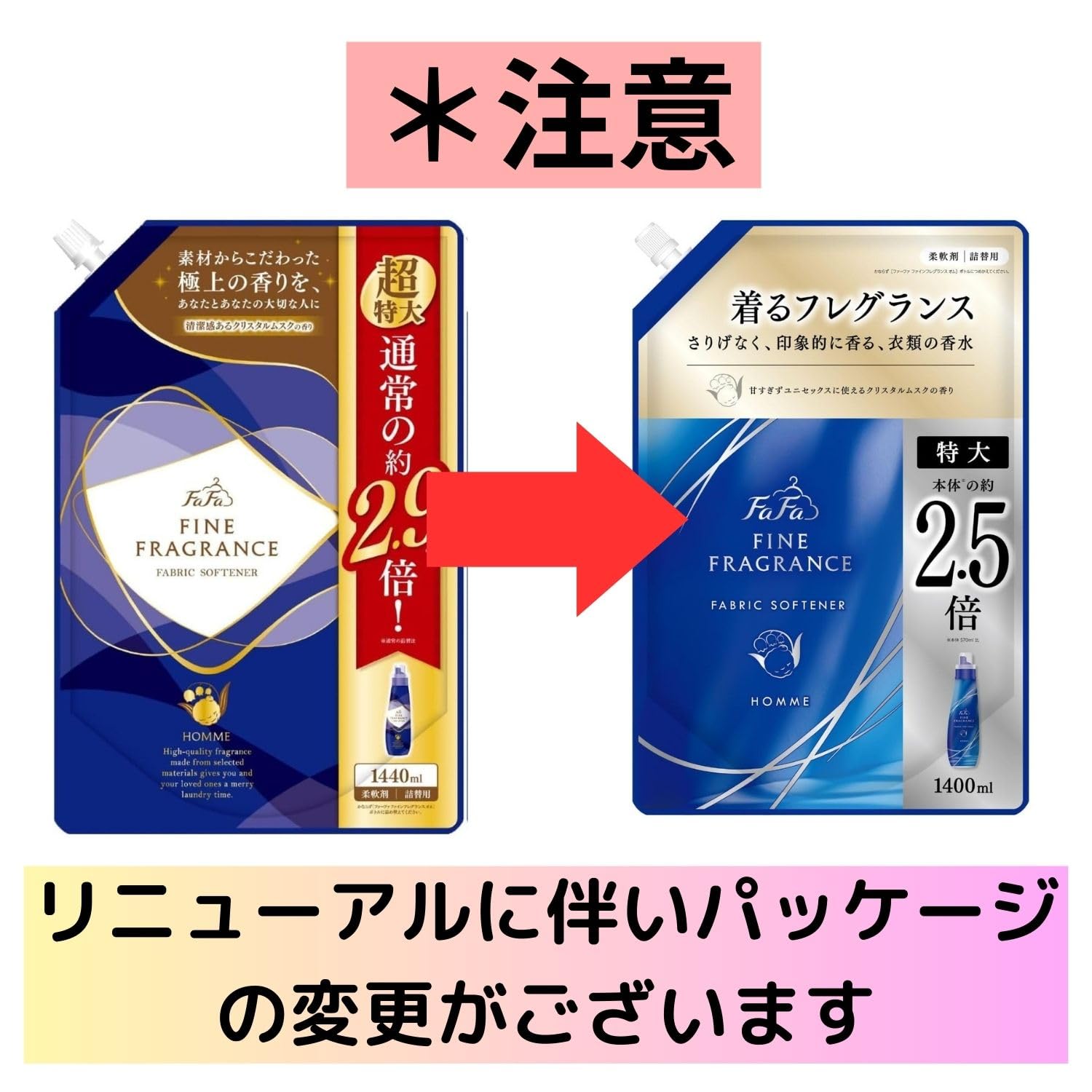 ファーファ 液体 ファインフレグランス 柔軟剤 オム (homme) 香水調 クリスタルムスクの香り 超特大 詰め替え 1440ml +おまけ付 単品
