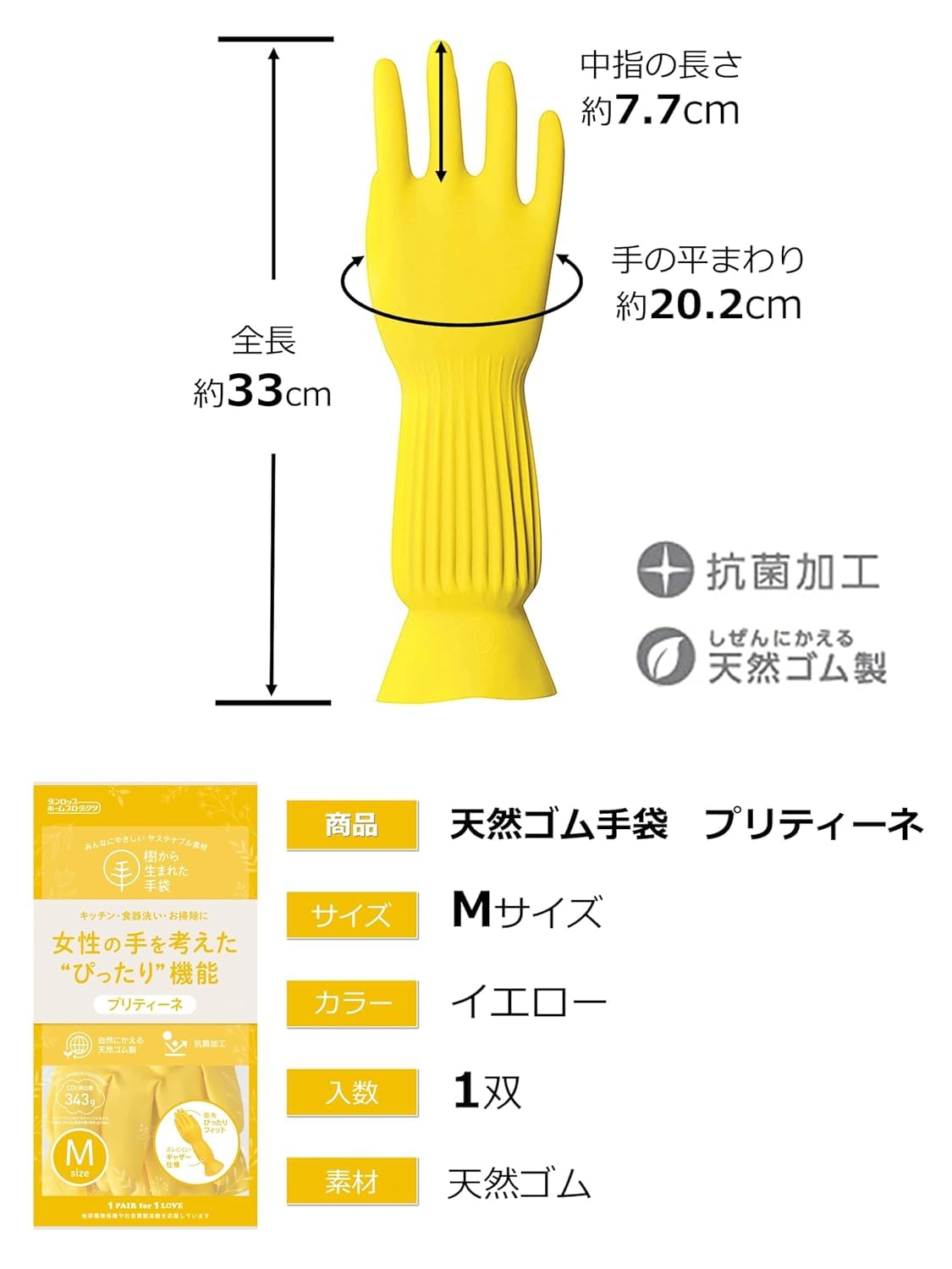 ダンロップ 炊事手袋 プリティーネ M イエロー 5双パック 樹から生まれた手袋 女性の手を考えた ピッタリ機能
