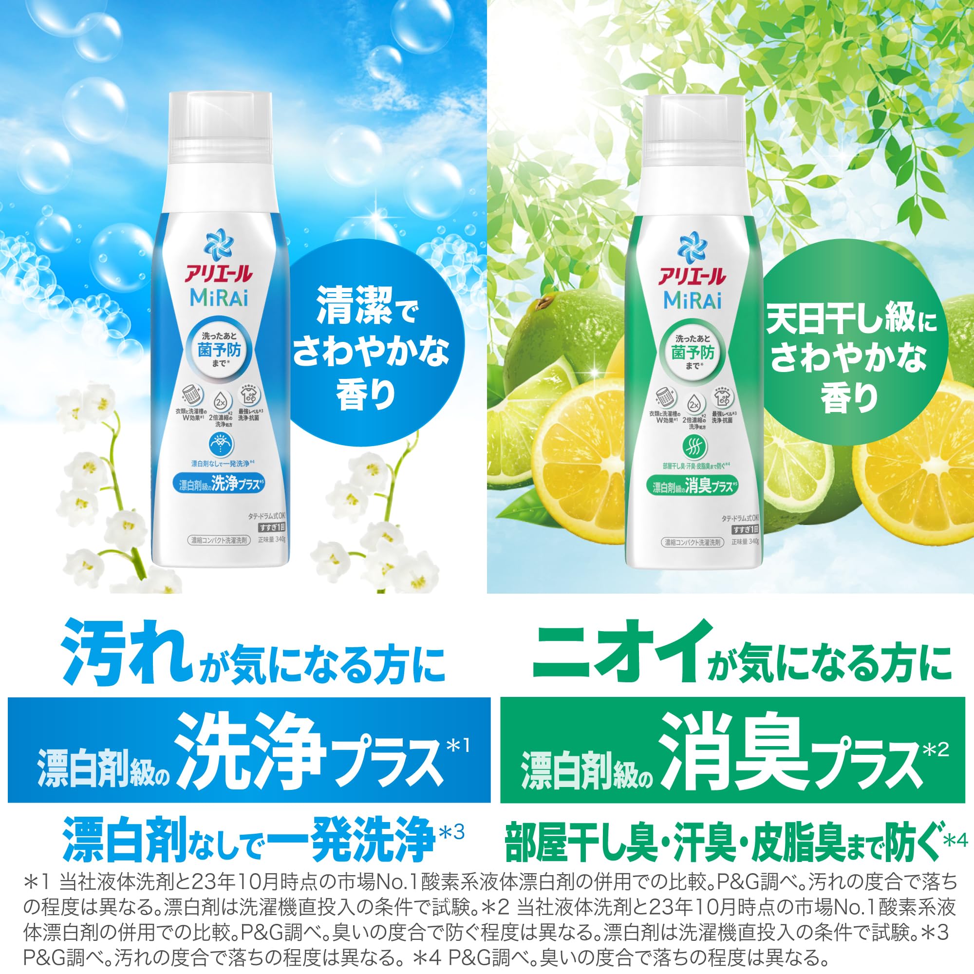 アリエール MiRAi 洗濯洗剤 濃縮 漂白剤級の消臭プラス* 詰め替え 約4.3倍/1.22kg[タテ・ドラム式OK]
