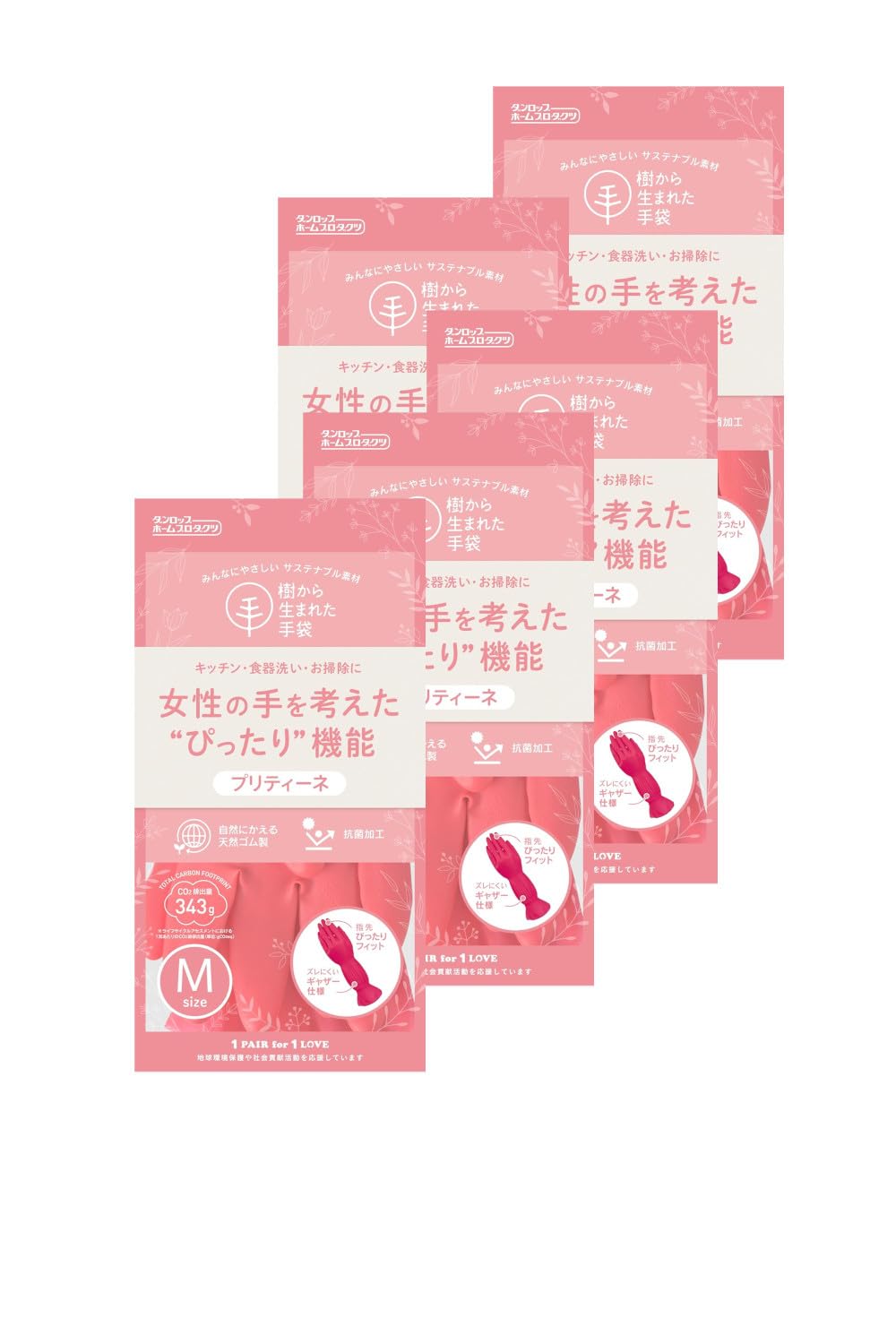 ダンロップ プリティーネ M レッド 5双パック 樹から生まれた手袋 女性の手を考えた ピッタリ機能