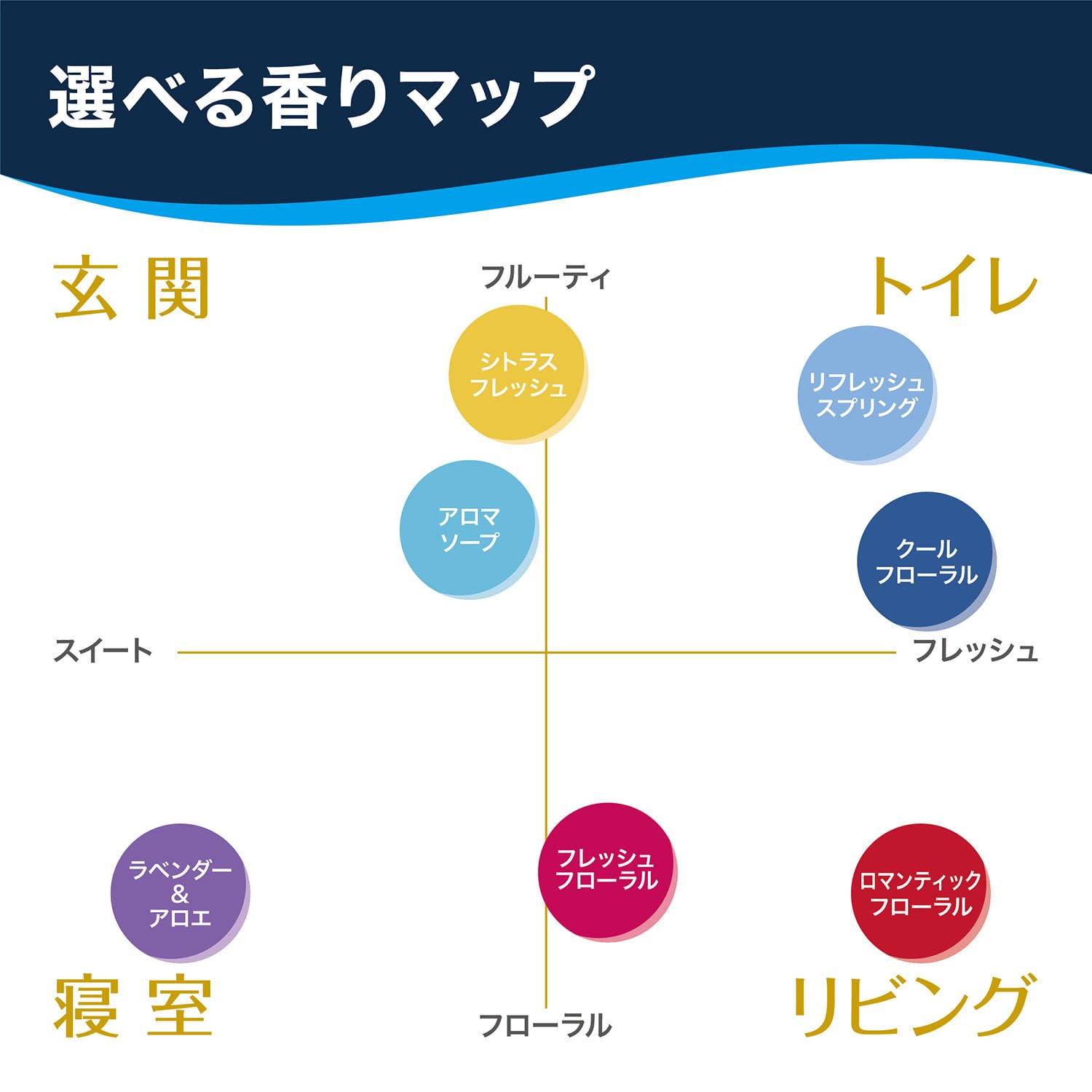 * エッセンシャルオイル、エタノール配合の素敵な香りが空間を包みます