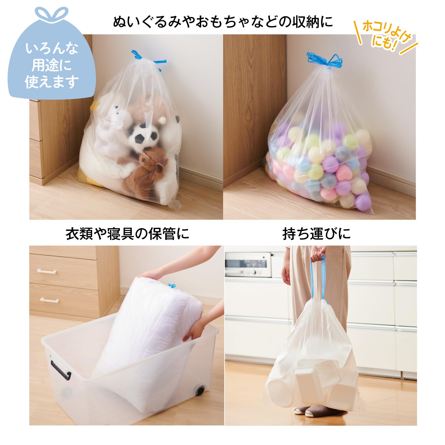 * 本体サイズ:縦60cm×横55cm 厚み0.015mm(容量20L)