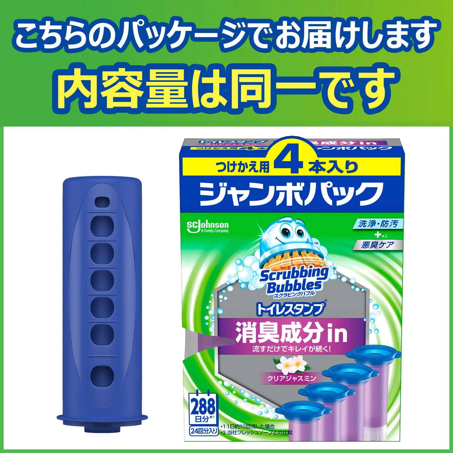 スクラビングバブル (Scrubbing Bubbles) トイレ掃除 トイレスタンプ 消臭 クリアジャスミンの香り 本体ハンドル+詰め替え用 4本(24スタンプ分) 洗剤 洗浄剤 掃除 付け替え用 まとめ買い