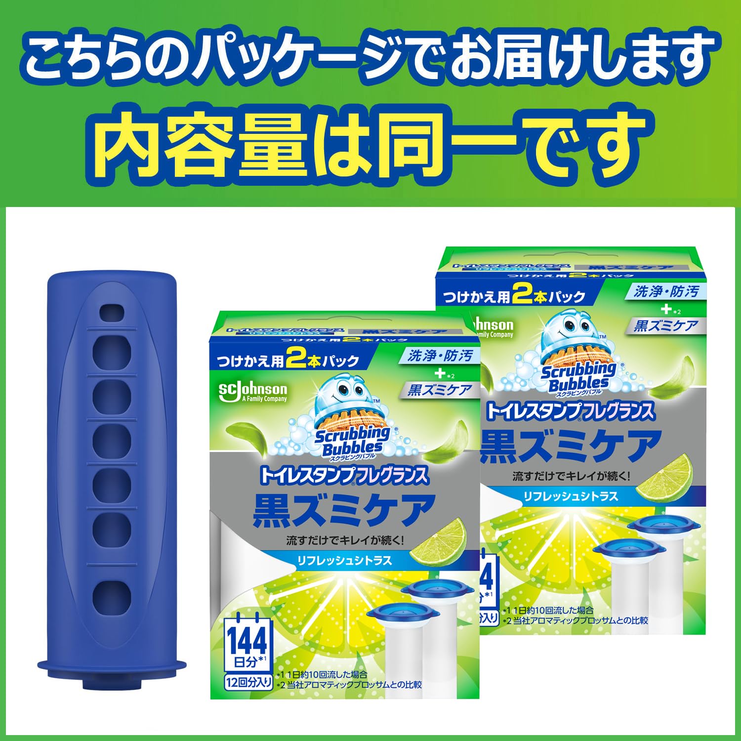 スクラビングバブル (Scrubbing Bubbles) トイレ掃除 トイレスタンプ 黒ズミ 漂白 リフレッシュシトラスの香り 本体ハンドル+詰め替え用 4本(24スタンプ分) 洗剤 洗浄剤 掃除 付け替え用 まとめ買い