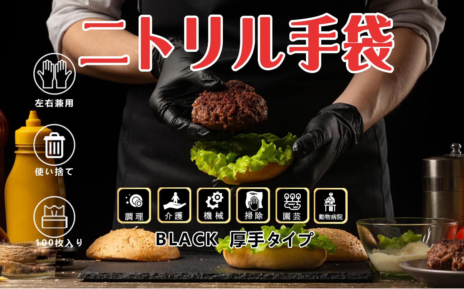 [SANYU] ニトリル手袋 ニトリルグローブ 使い捨て手袋 黒 ブラック 食品衛生法適合 粉なし パウダーフリー 100/300/500/1000枚入 (S, 1箱(100枚×1))
