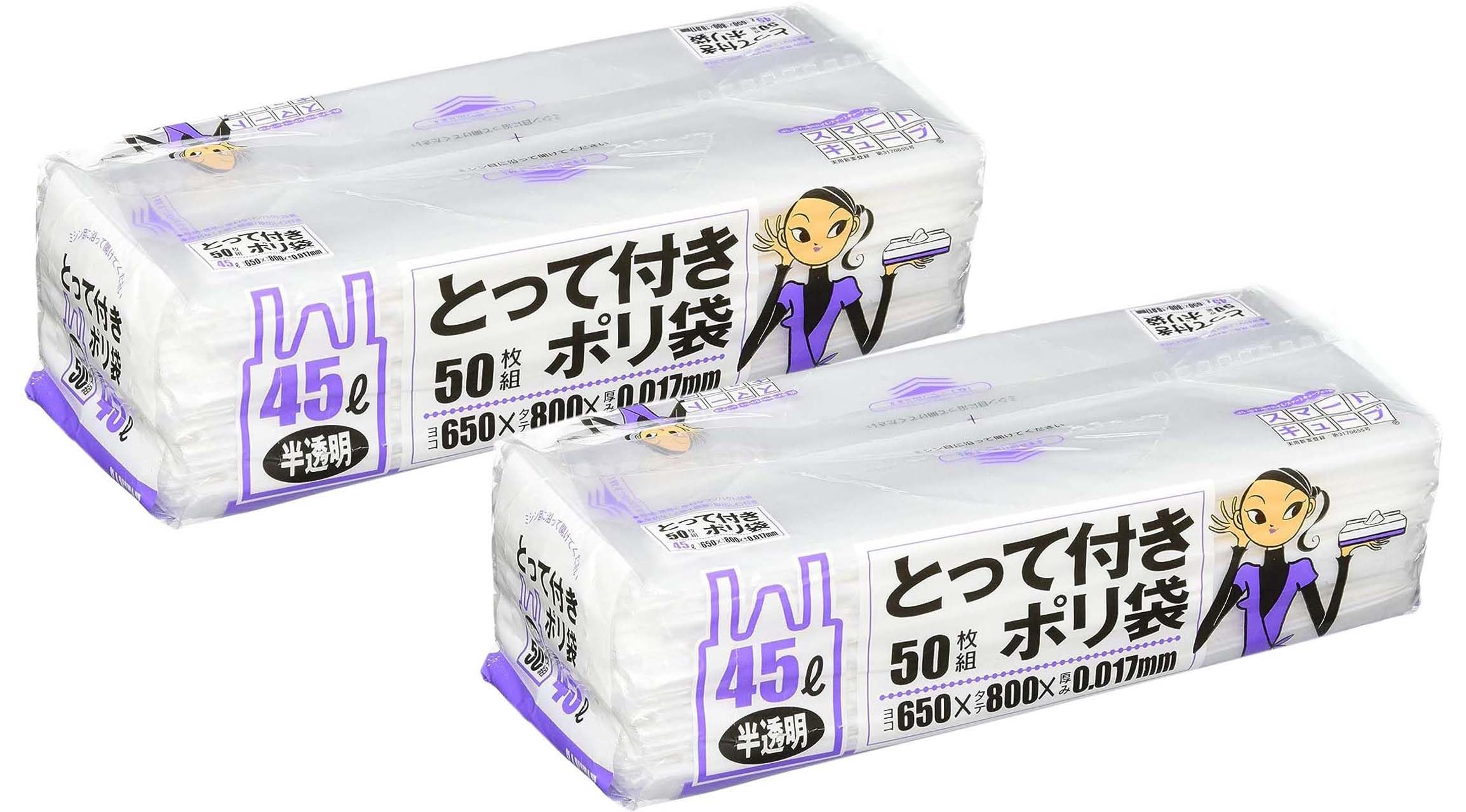 日本サニパック(SANIPAK) 日本サニパック(SANIPAK) スマートキューブ ゴミ袋 ポリ袋 取っ手付き 半透明 45リットル 50枚入 2個セット 横65×縦80cm 厚さ0.017mm SC49