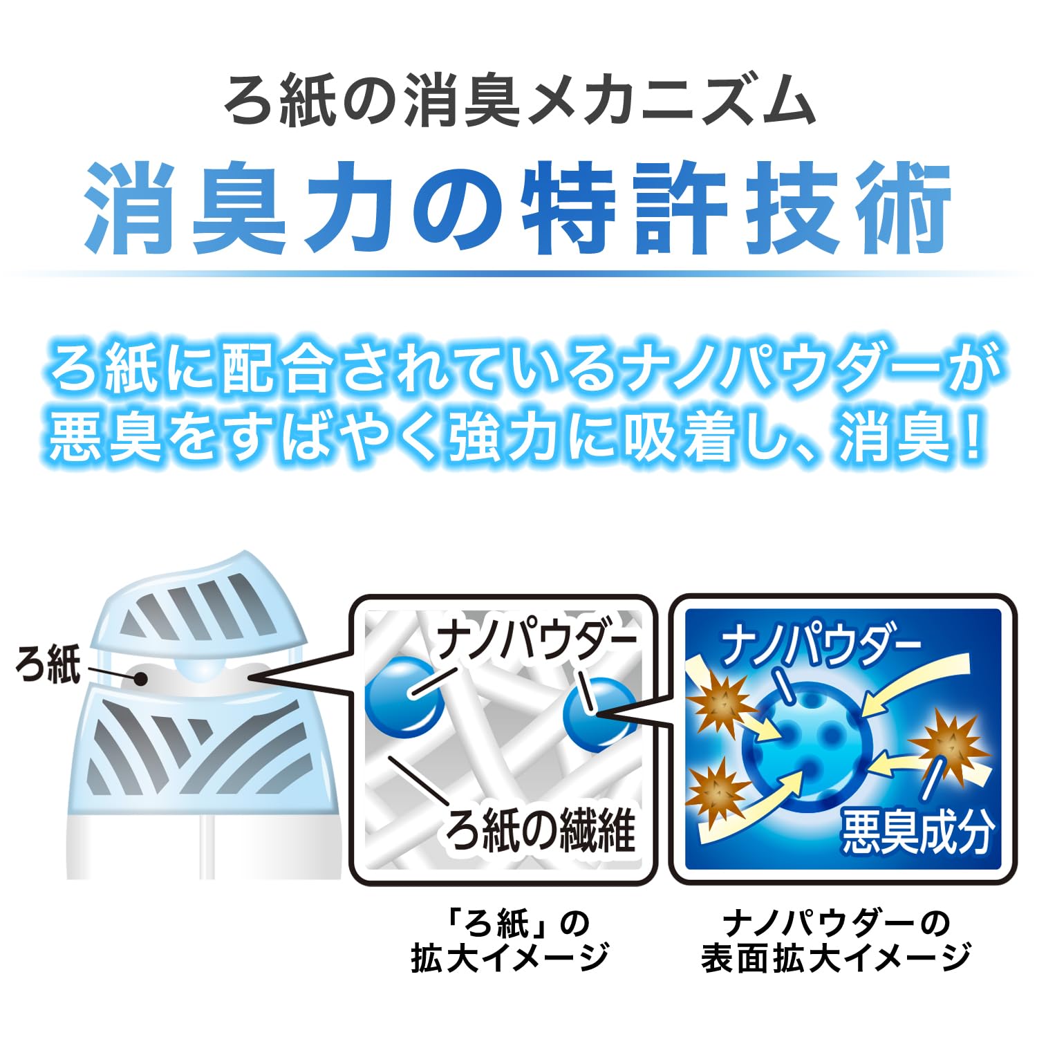 * 【ナノパウダー※配合】すばやく強力に空間を消臭。※ナノレベルの孔(あな)を持つ、悪臭を吸着する消臭剤。