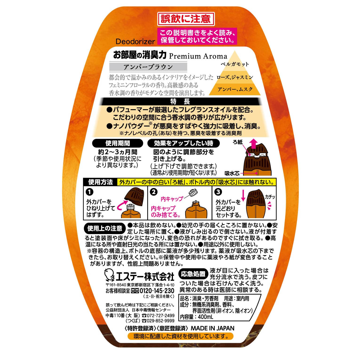 * 【アンバーブラウンの香り】都会的で温かみのあるインテリアをイメージしたフェミニンフローラルの香り。香水調の香りがモダンな空間を演出します。
