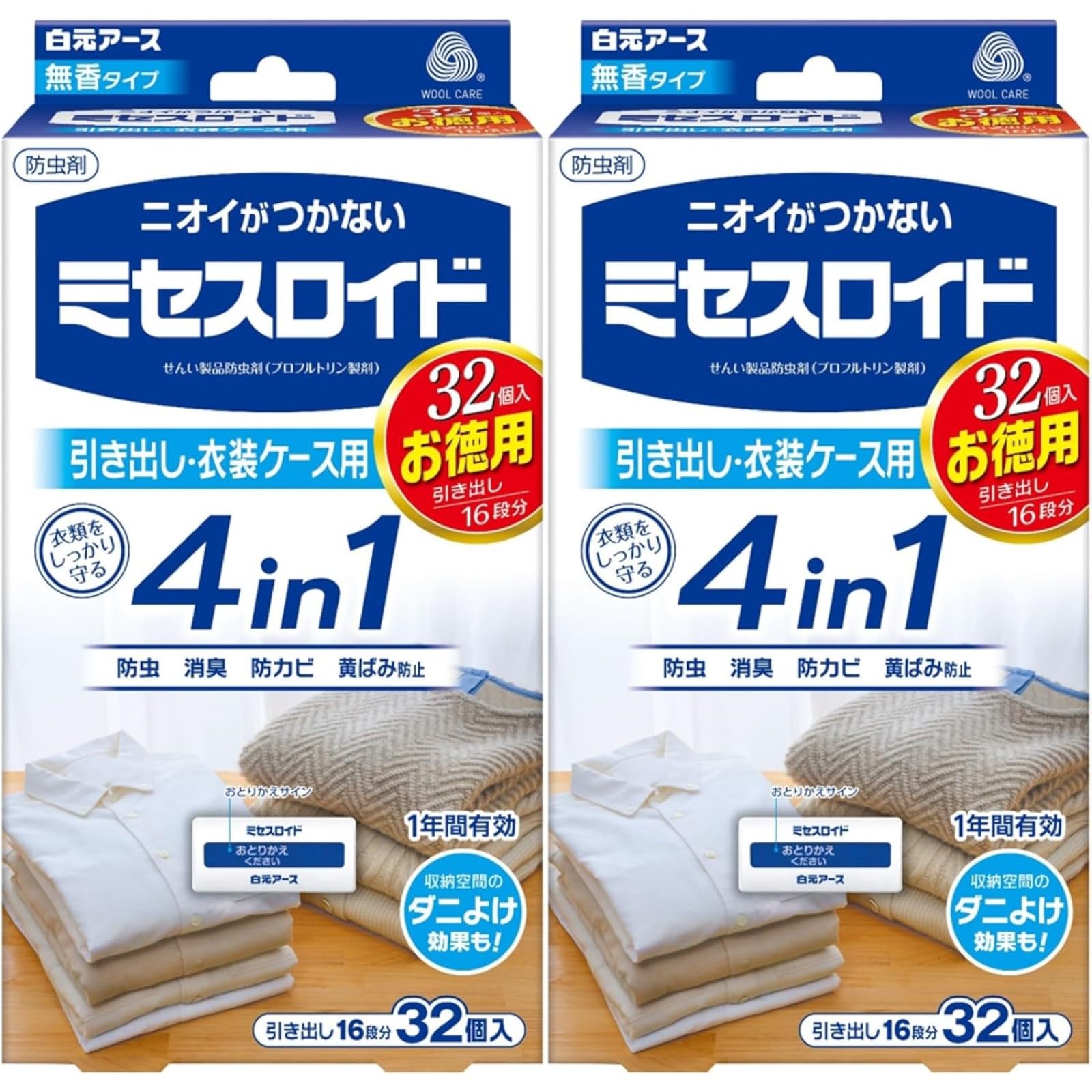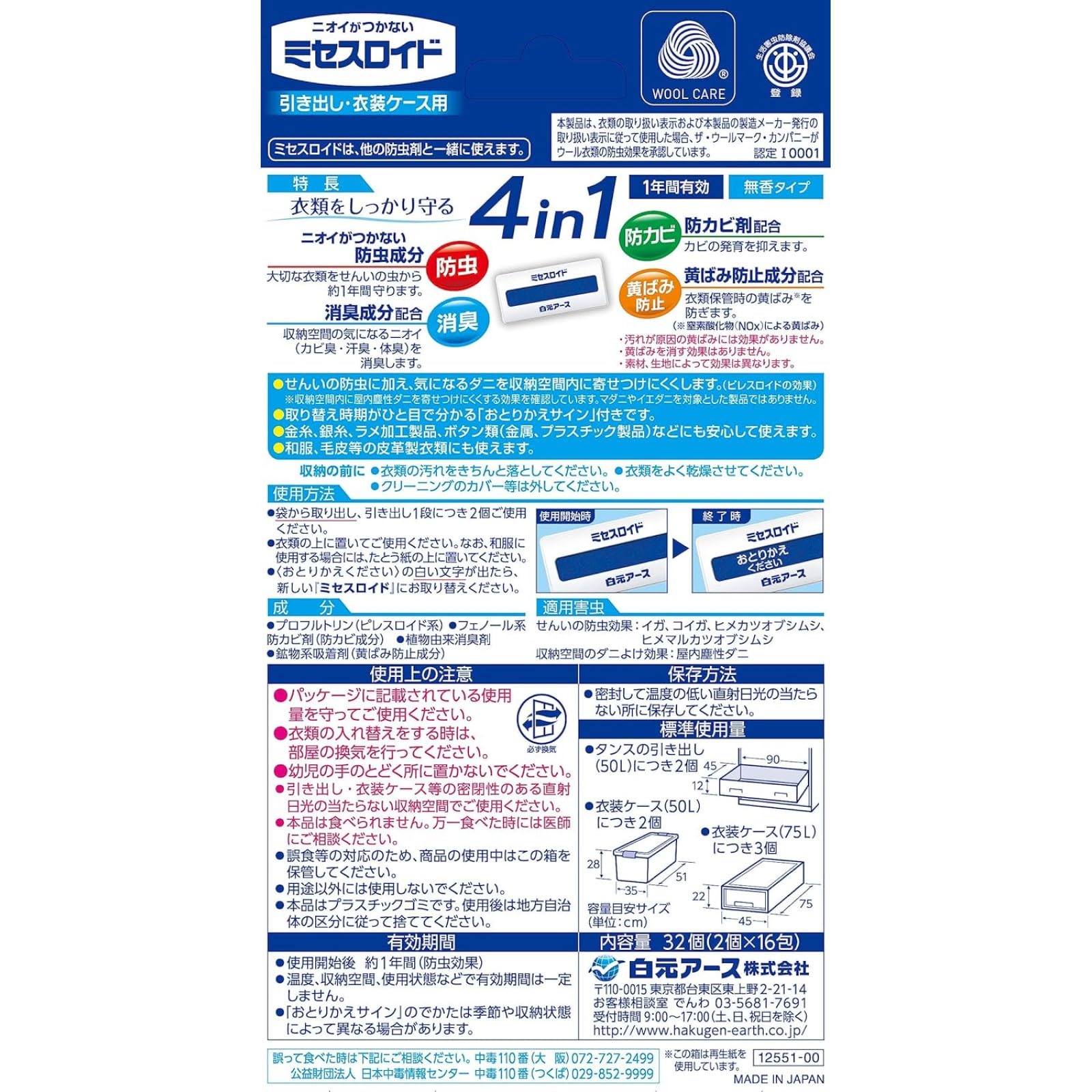 ミセスロイド 白元アース 衣類防虫剤 引き出し・衣装ケース用 64個 無香 無臭 1年間有効 収納空間のダニよけ効果付き 虫除け 防カビ 消臭 黄ばみ防止