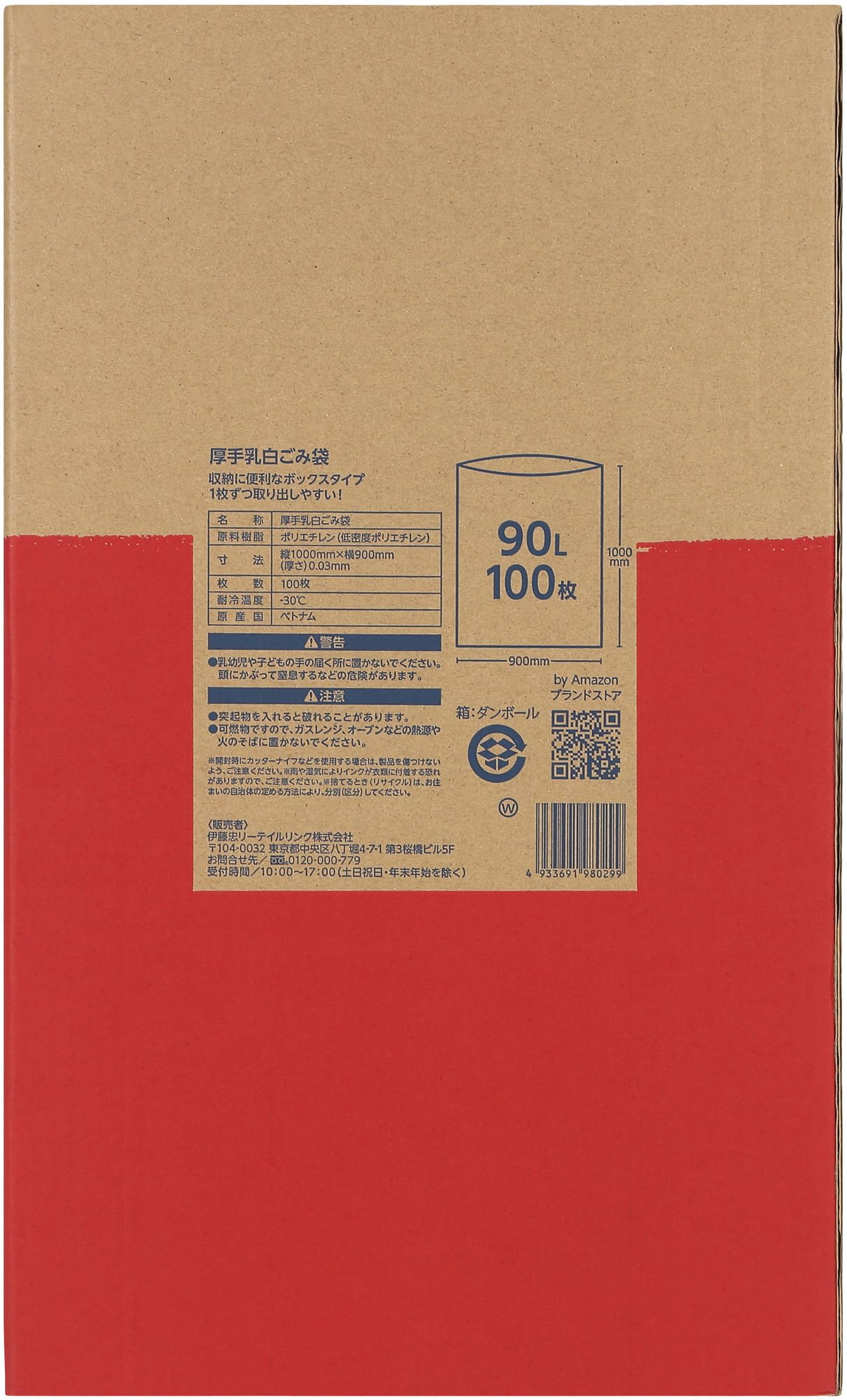 厚手 ごみ袋 乳白色 つるつるタイプ 90L 100枚