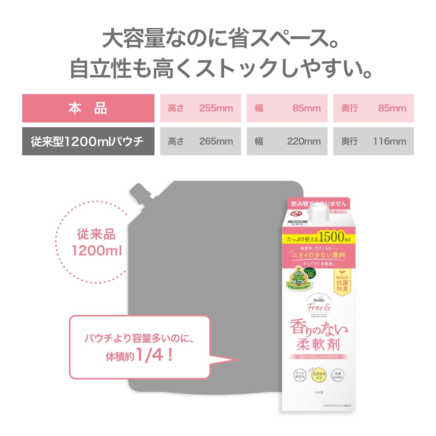 * ニオイの少ない原料を厳選した香りのない柔軟剤。