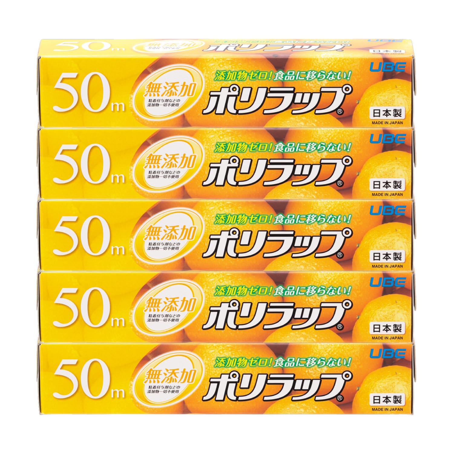 宇部フィルム ポリラップ キッチンラップ 食品用ラップ 22cm×50m 5本セット 無添加 添加物ゼロ 赤ちゃんにも安心 離乳食の保存に 防災 日本製