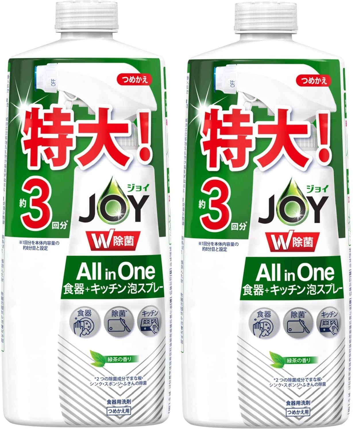 ジョイ 【まとめ買い】 W除菌 オールインワン 泡スプレー 食器用洗剤 緑茶の香り 詰め替え 3回分 630mL × 2個