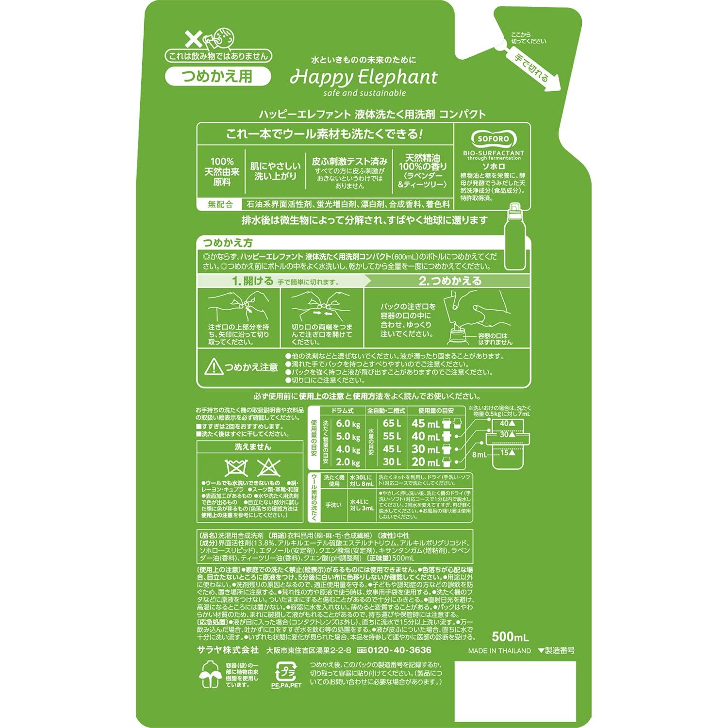 サラヤ Happy Elephant ハッピーエレファント 液体洗たくコンパクト 詰替 1500ml(500ml×3個)
