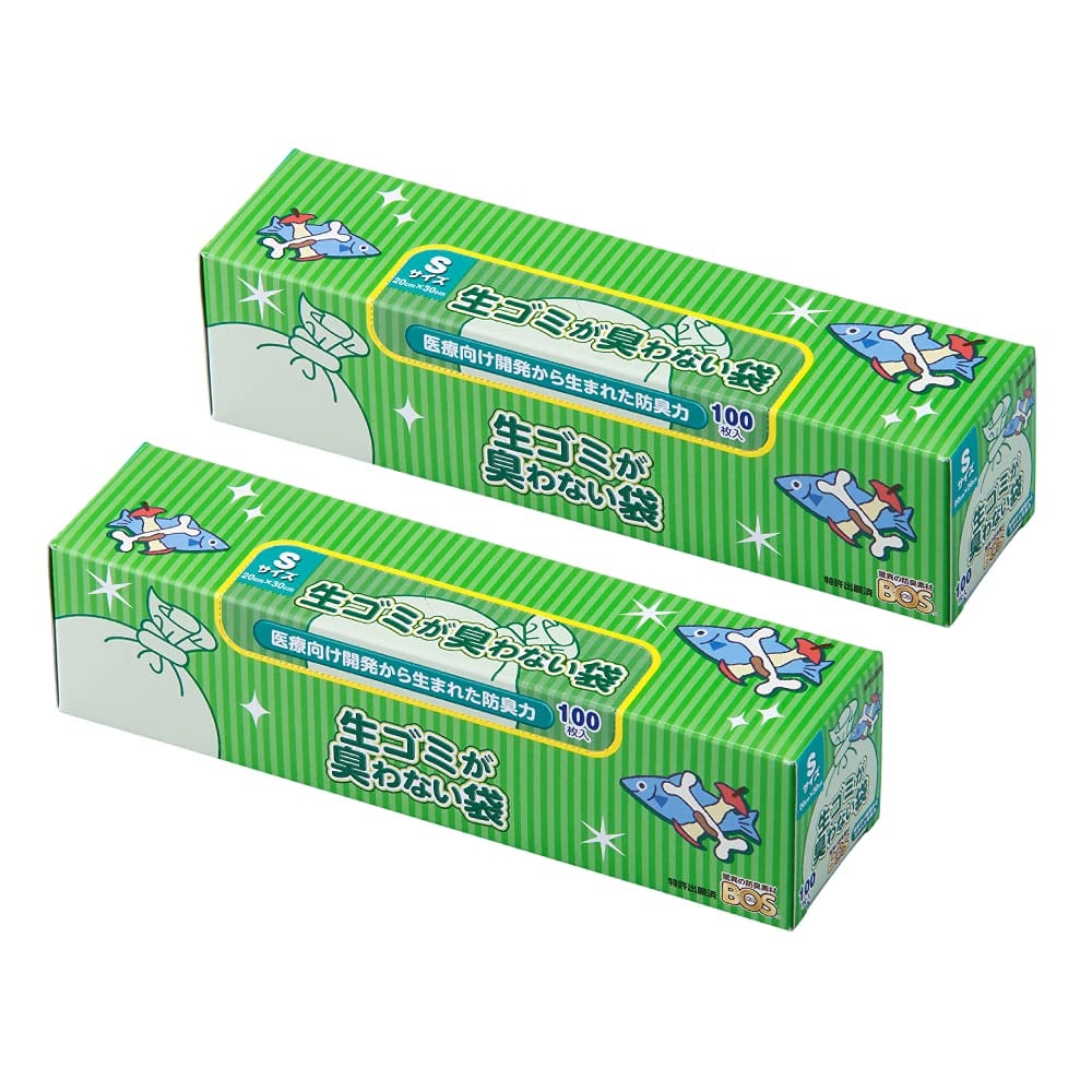 驚異の防臭袋 BOS (ボス) 生ゴミが臭わない袋 2個セット 生ゴミ 処理袋【袋カラー:白】 (Sサイズ 100枚入)