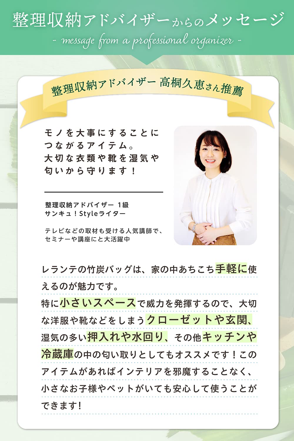 * 【レランテのこだわり】当社の竹炭パックは耐久性も優れており、2重構造のため、竹炭の粉が漏れる心配はございません。さらに使用後、天日干しをしていただければ、最大2年間繰り返しお使いいただけます。