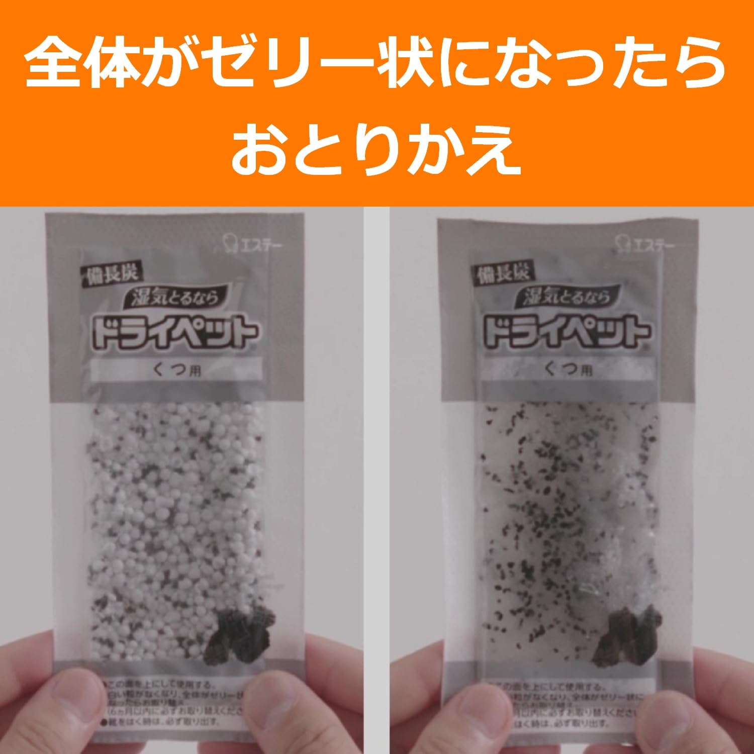 * 【革靴スニーカーなどの内側の湿気をとり、汗ムレ臭を脱臭】薬剤がゼリー状になるので、除湿効果がひとめでわかります。