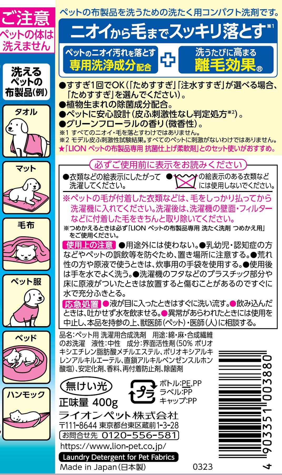 ライオン ペットの布製品専用洗たく洗剤 400gx3個パック まとめ買い LIONPET