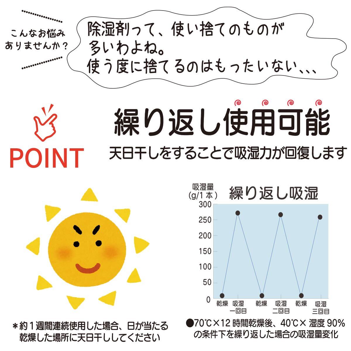 * 湿気が溜まりやすい押し入れやクローゼット、下駄箱などに入れて強力除湿剤としても効果を発揮します