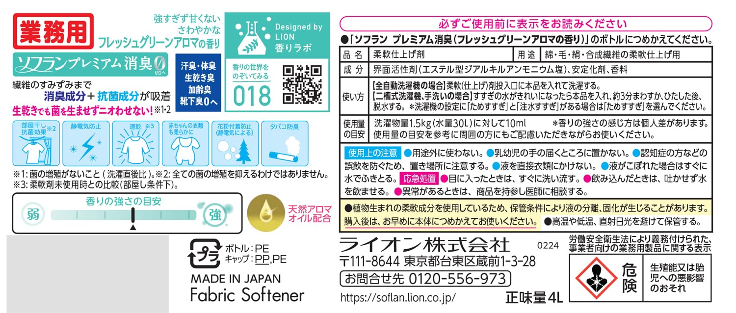 【業務用 大容量】 ソフラン プレミアム消臭 フレッシュグリーンアロマの香り 4L 詰め替え 液体 柔軟剤 部屋干し 抗菌 消臭