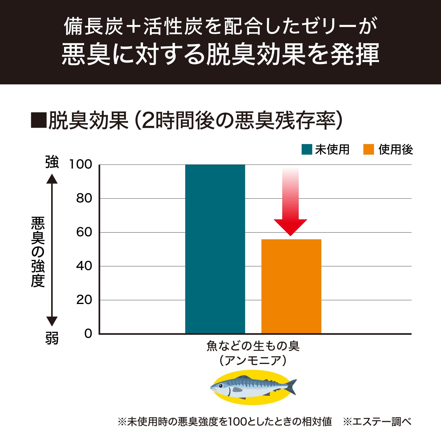 * 【ゼリー状の炭が小さくなったらお取り替え】交換時期が簡単に分かります。