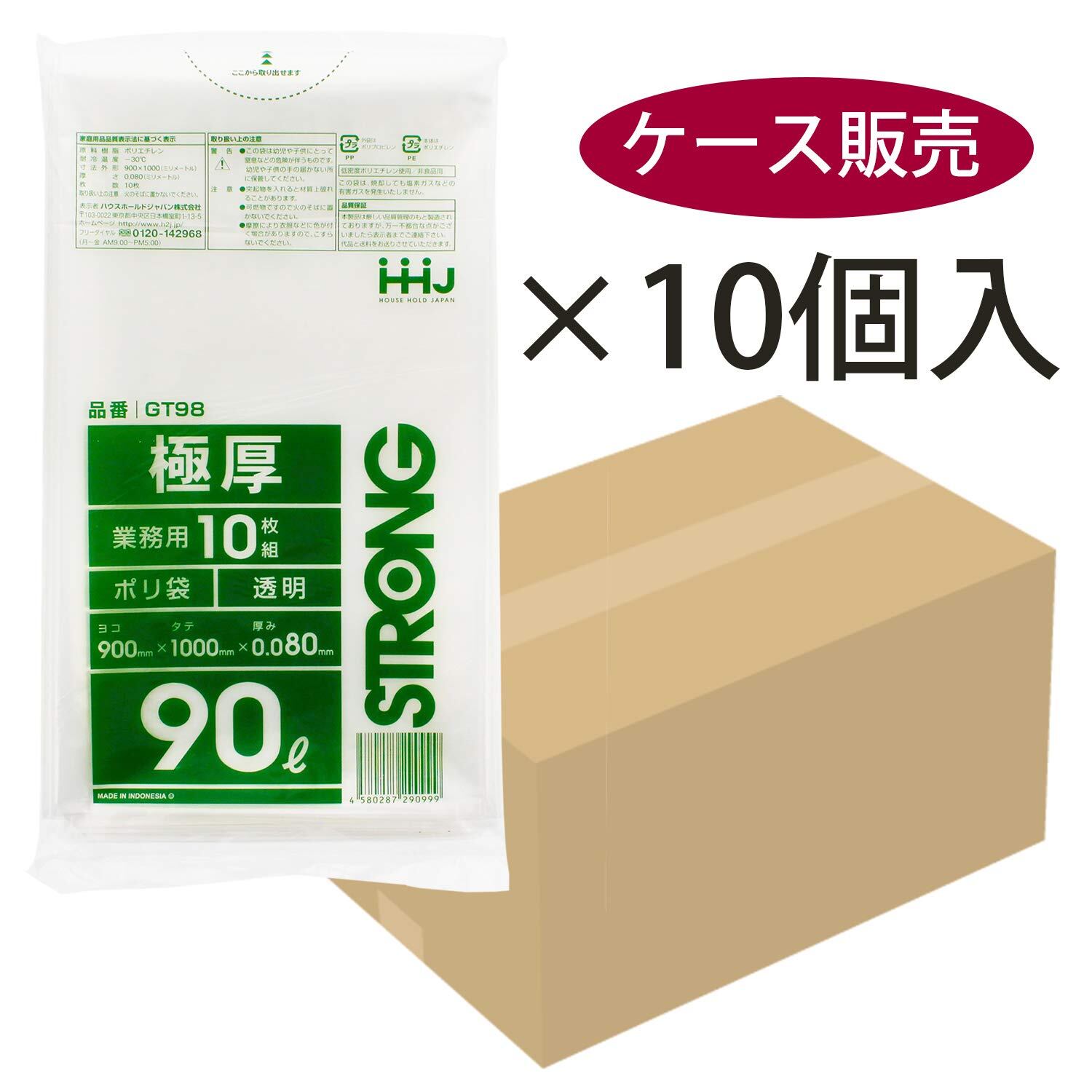 ハウスホールドジャパン ゴミ袋 極厚ポリ袋 0.08mm 業務用 (ケース販売) 透明 90L GT98 10枚入×10個セット