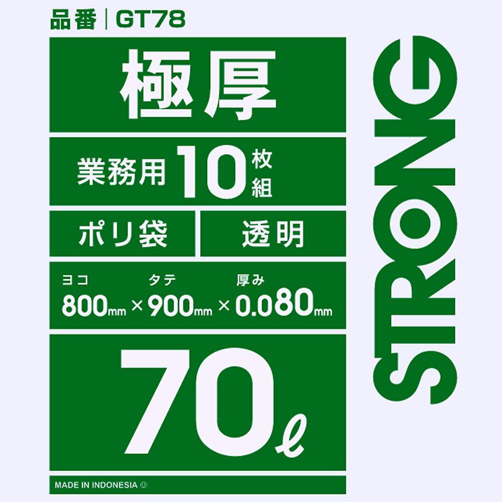 ハウスホールドジャパン ゴミ袋 ポリ袋 70L 約90×80×0.008cm(1枚あたり) 10枚入 透明 極厚 0.08mm 業務用 GT78