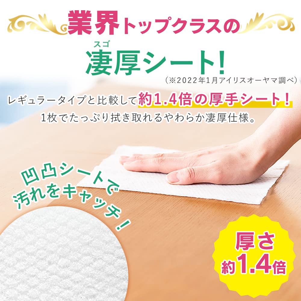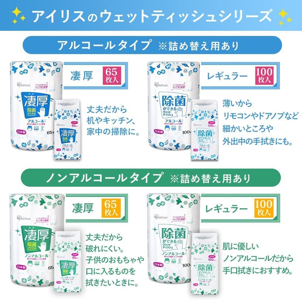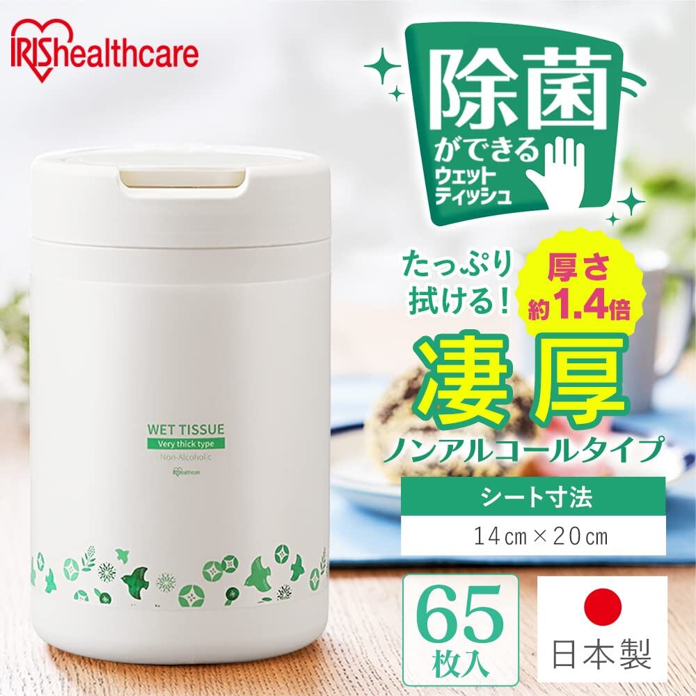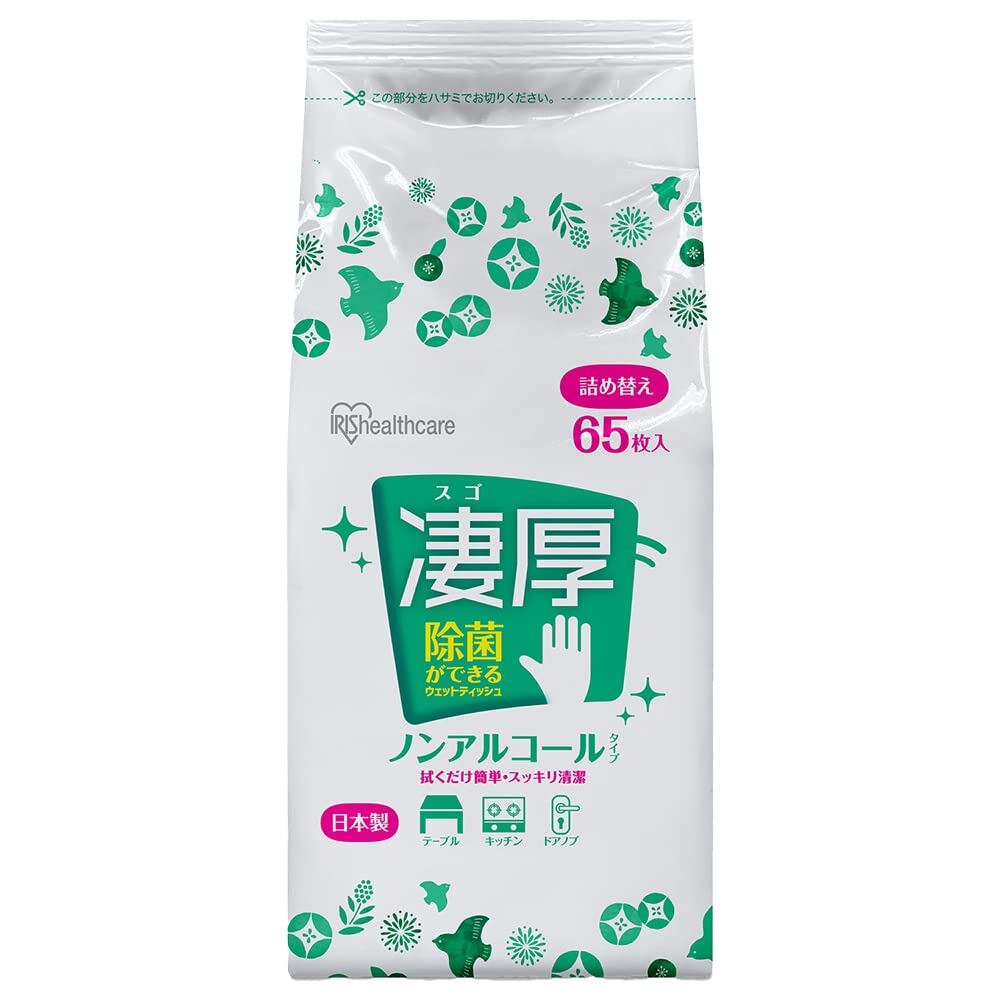 アイリスオーヤマ(IRIS OHYAMA) ウェットティッシュ [詰替] 凄厚 ノンアルコール 日本製 除菌 WTT-65N ホワイト 65枚入り