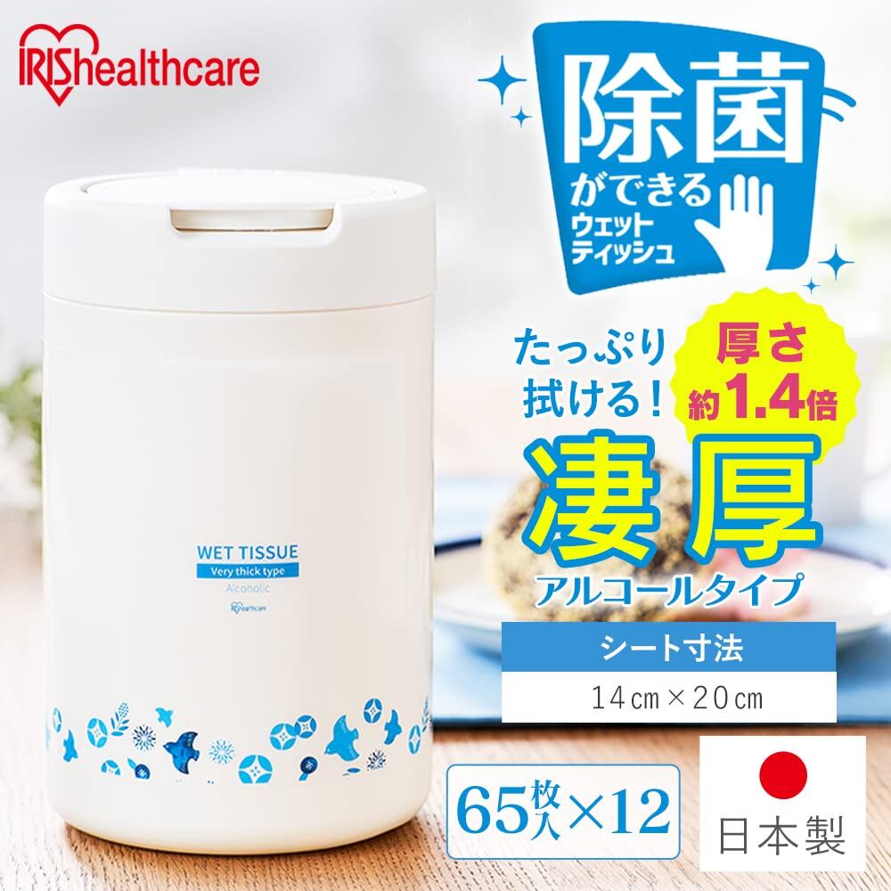 アイリスオーヤマ ウェットティッシュ 日本製 極厚 除菌 アルコール 厚手 つめかえ用 WTT-65A 65枚入 ×12個 車内 キャンプ ペット 新生活