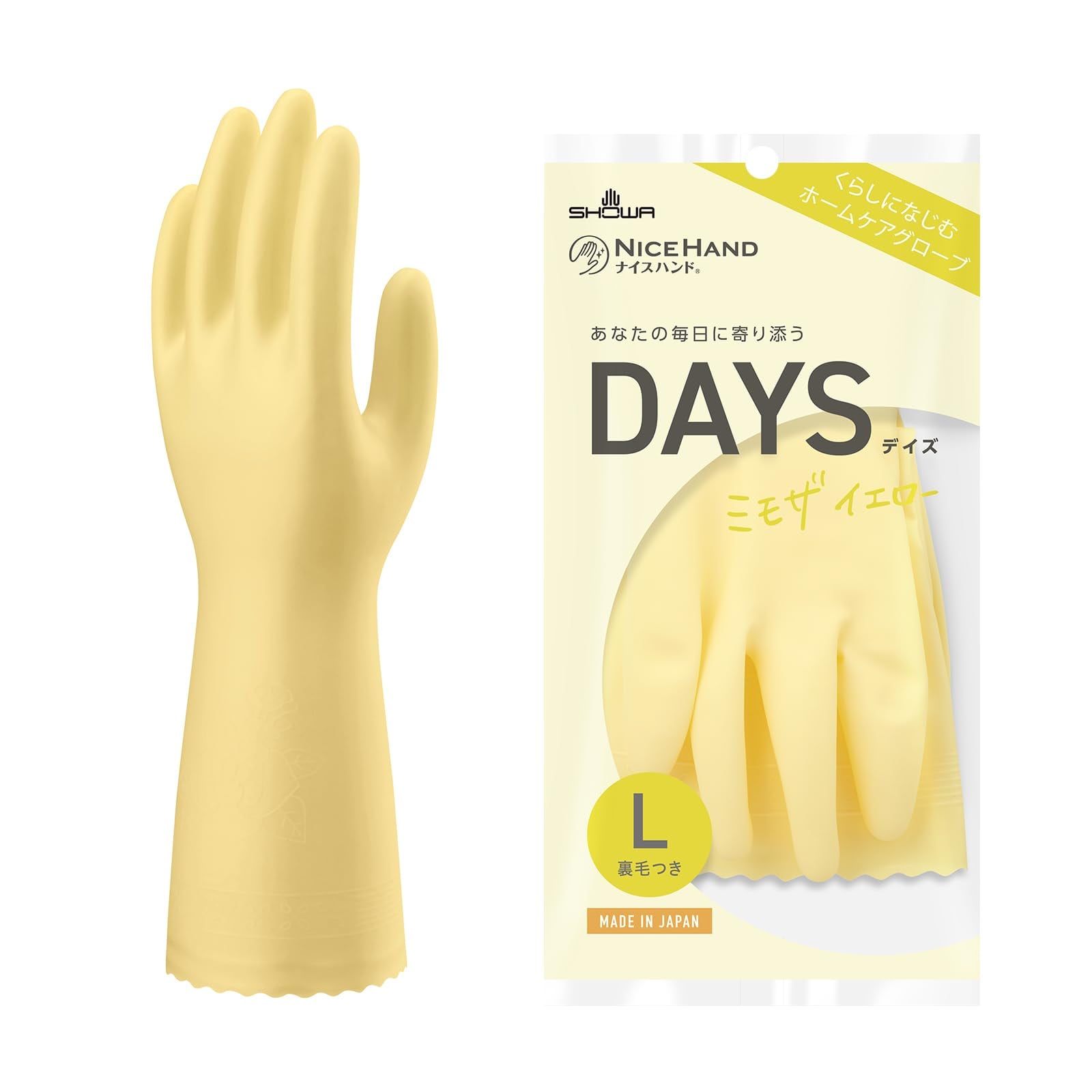 [ショーワグローブ] 日本製・塩化ビニル樹脂手袋・ハンドケア ナイスハンドDAYS デイズ Sサイズ ミモザイエロー 1双 インテリアになじむニュアンスカラー 裏毛つき