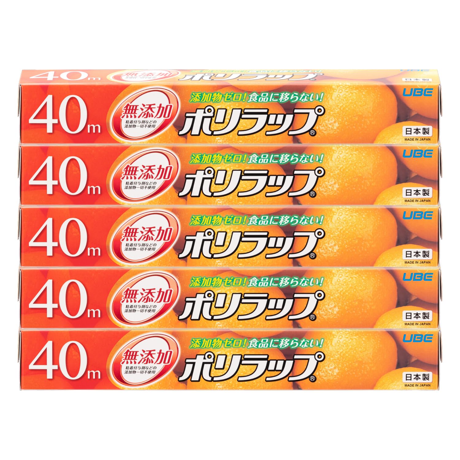 宇部フィルム ポリラップ キッチンラップ 食品用ラップ 30cm×40m 5本セット 無添加 添加物ゼロ 赤ちゃんにも安心 離乳食の保存に 防災 日本製