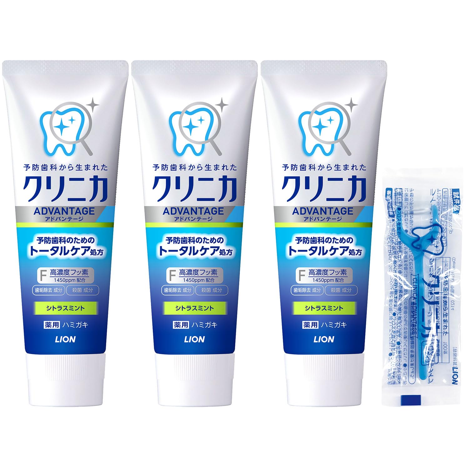 クリニカ アドバンテージ [医薬部外品] ハミガキ シトラスミント 130g×3個+フロス付き 歯磨き粉 高濃度フッ素 (1450ppm配合) 虫歯