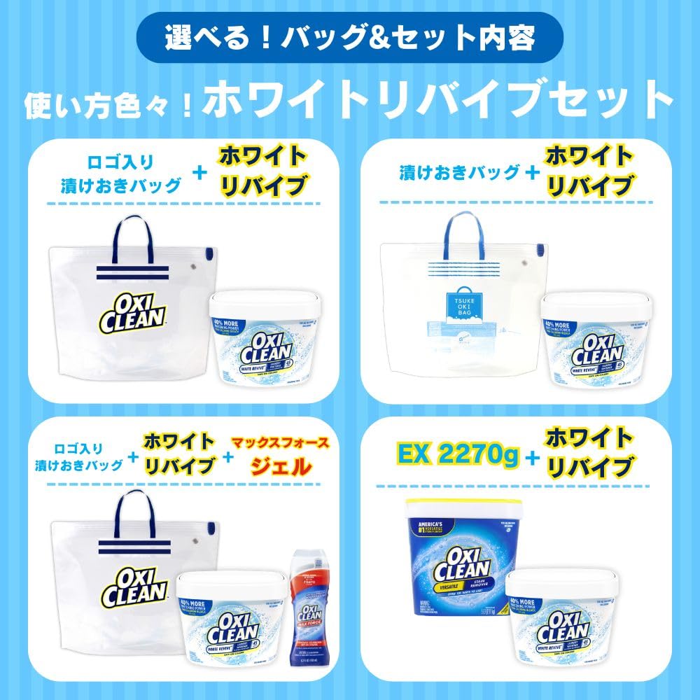 オキシクリーン ホワイトリバイブ 粉末タイプ 1360g 酸素系漂白剤 約45回分 + 漬けおきバッグ セット/アメリカ版 酵素 消臭 黄ばみ 洗濯 白 白物 Tシャツ 汚れ シミ 過炭酸ナトリウム 漂白 洗たく つけおき 衣類用 洗剤 酸素 オキシ漬 粉末洗剤