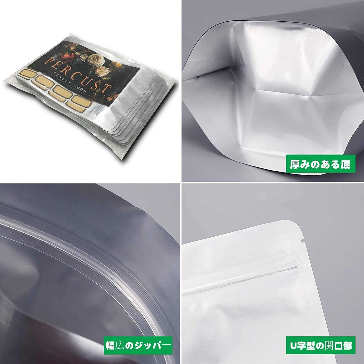 * サイズと数量:30枚入 アルミ ジップ袋 、両面0.24mm厚、自立アルミホイル底、再利用可能ジッパーコーヒーバッグ。