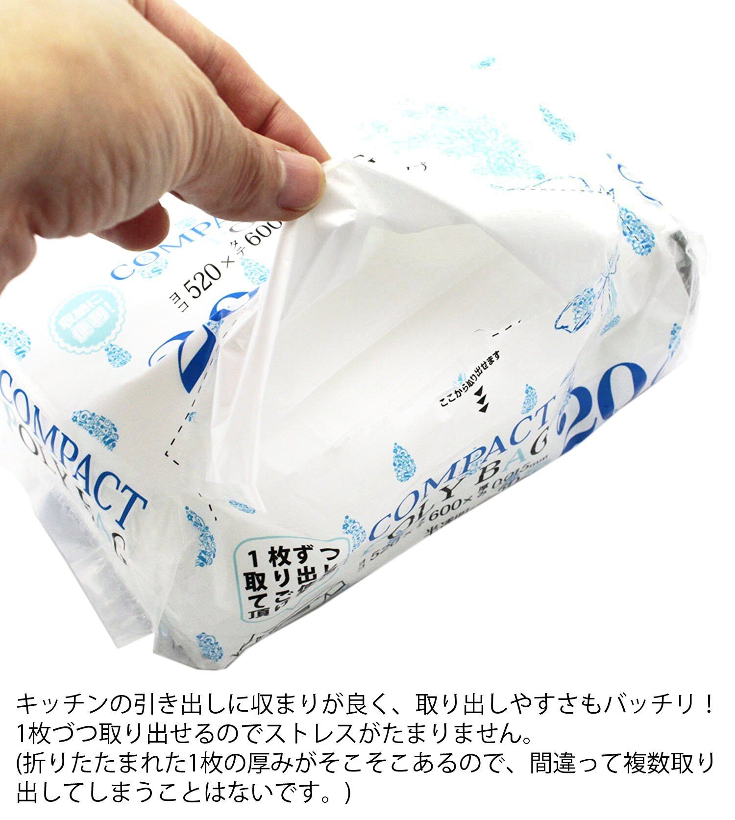 ハウスホールドジャパン コンパクト ポリバッグ 半透明 ポリ袋 45L 50枚入 W65×D80cm×厚さ0.015mm 収納便利 1枚づつ取り出せるコンパクトタイプ KJ40