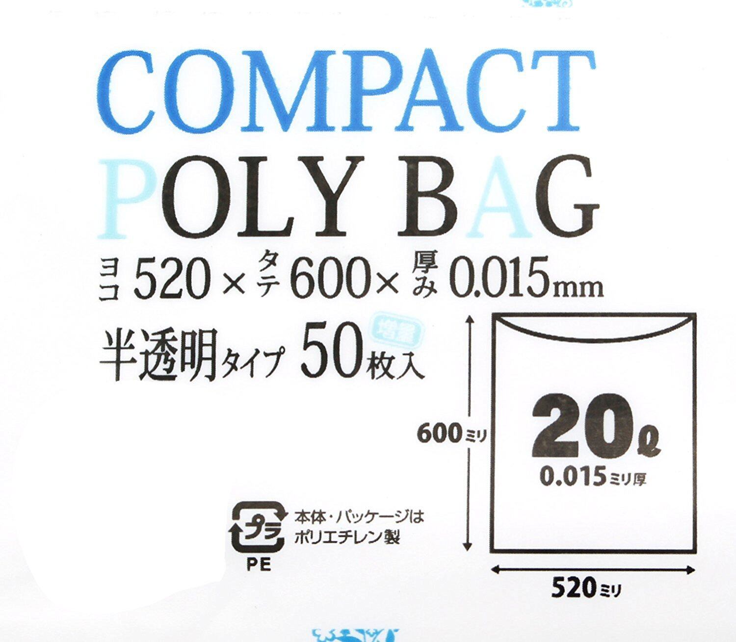 ハウスホールドジャパン ポリ袋 コンパクトポリ袋 20L 50枚入×2セット 半透明 厚み0.015mm 高密度ポリエチレン 1枚ずつ取り出せる コンパクトパッケージ KJ20