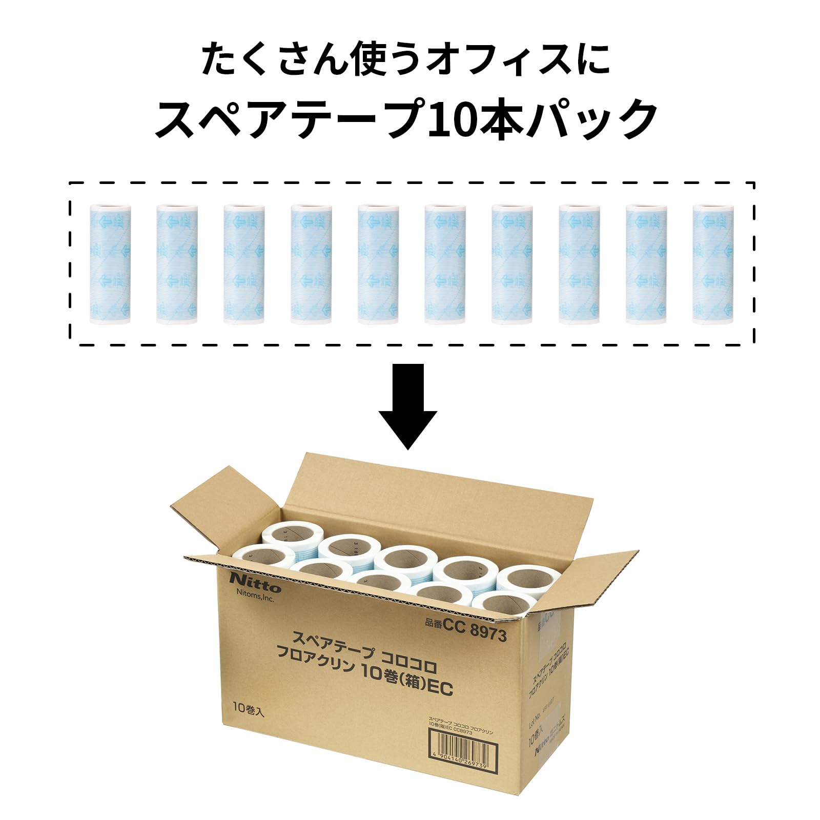 ニトムズ コロコロ スペアテープ 50周 10巻入 フロアクリン テープ 替え フローリング カーペット 畳 元祖 ペットの毛 ダニ 花粉 お徳用 160mm幅 CC8973