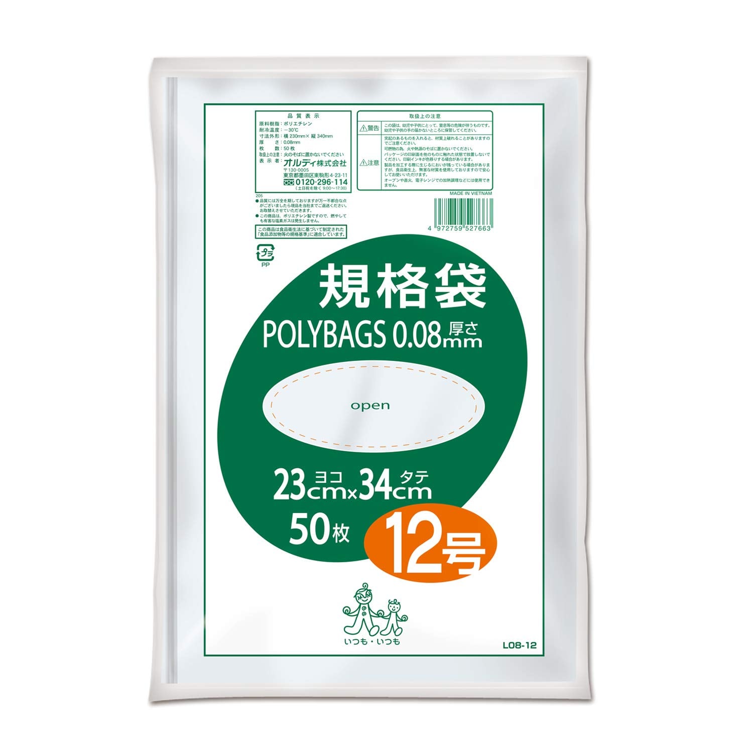 オルディ キッチンポリ袋 規格袋 透明 12号 縦34×横23cm 50枚入 厚くて丈夫 食品衛生法適合 ポリバッグ L08-12