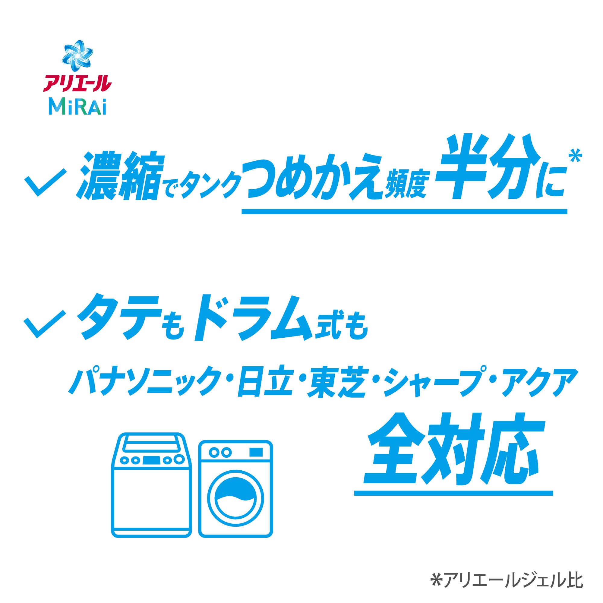 アリエール MiRAi 洗濯洗剤 濃縮 漂白剤級の洗浄プラス* 本体大 510g [タテ・ドラム式OK]